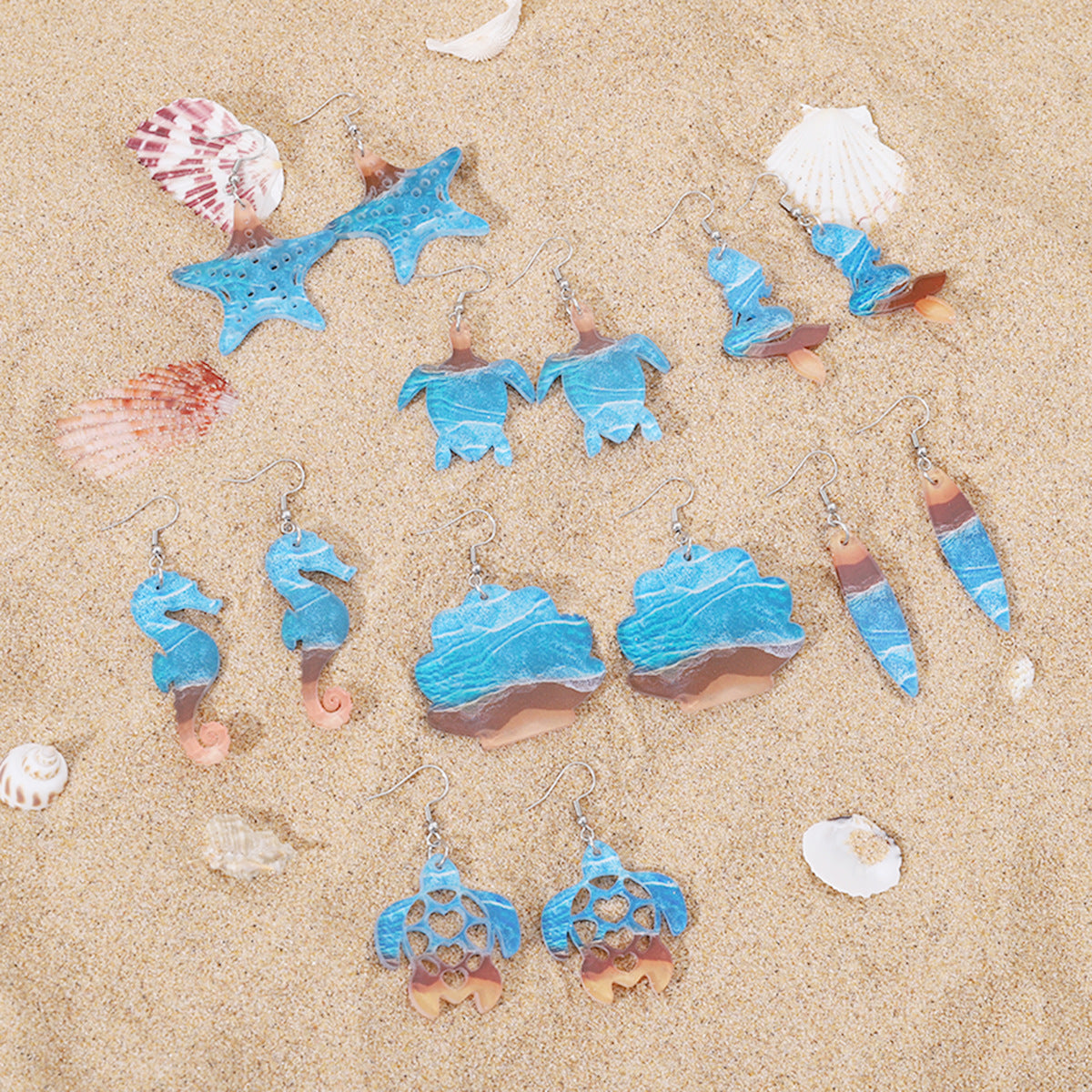 Wholesale Bohemian Wave Starfish Turtle Shell Seahorse Pendant Acrylic Earrings
