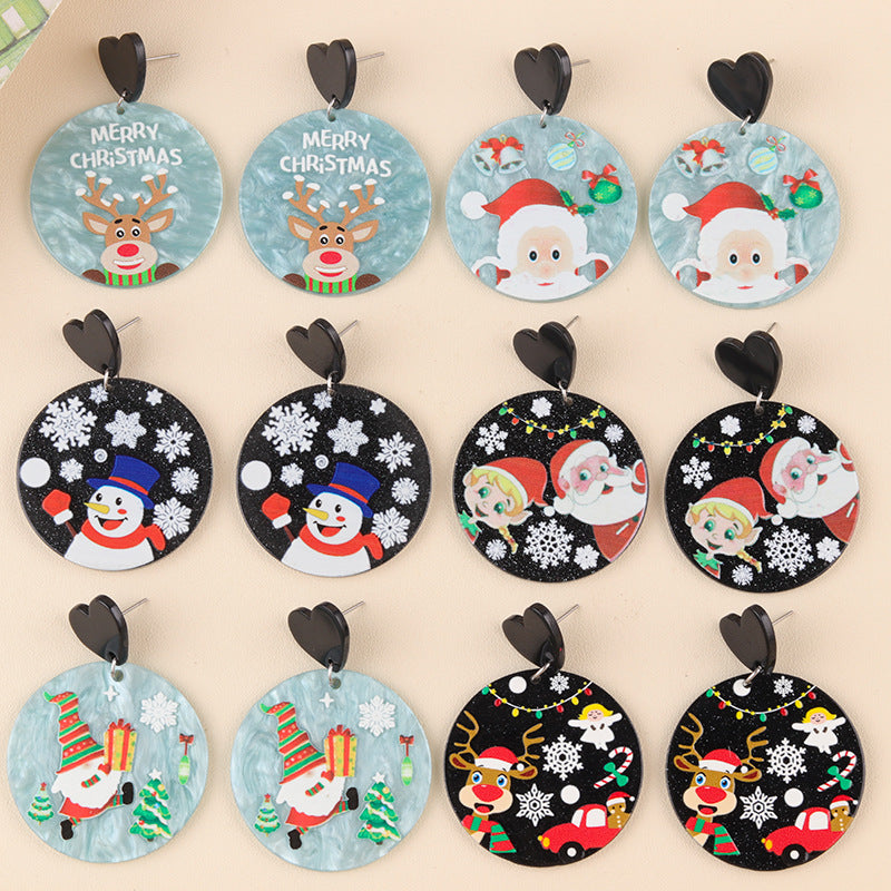 Wholesale Christmas Series Geometric Round Santa Claus Elk Snowman Earrings