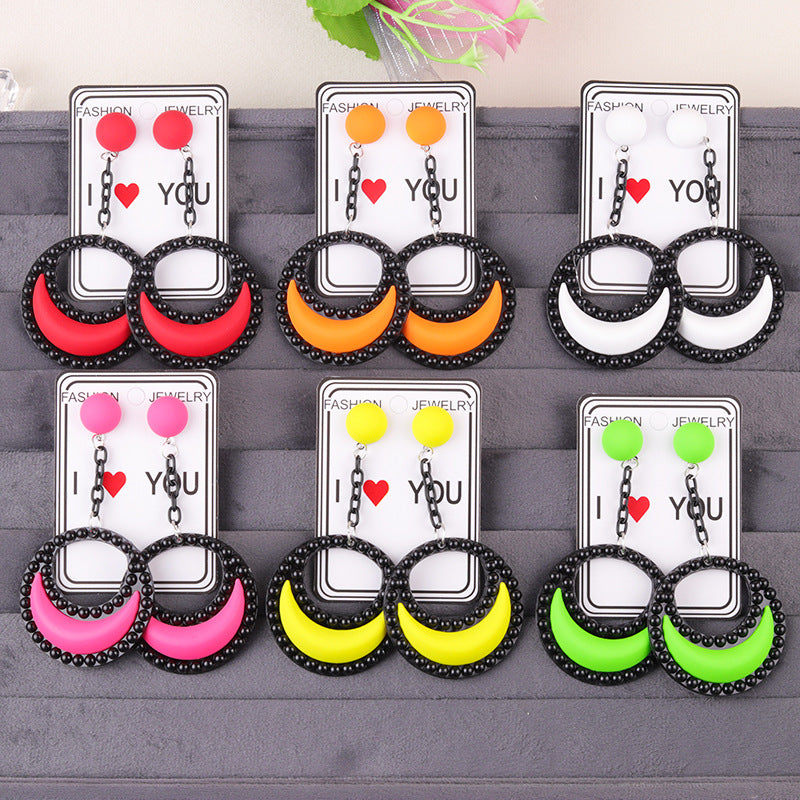 Wholesale Exaggerated Candy Color Three-Dimensional Crescent Acrylic Earrings