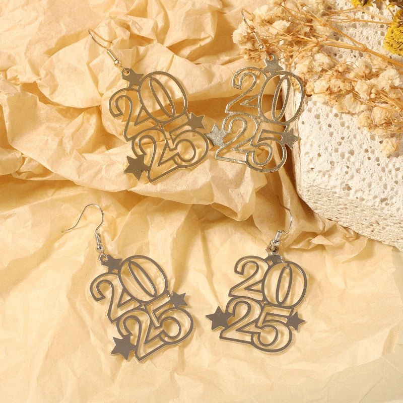 Wholesale Personalized Creative Design Metal Hollow Number 2025 Unique Earrings