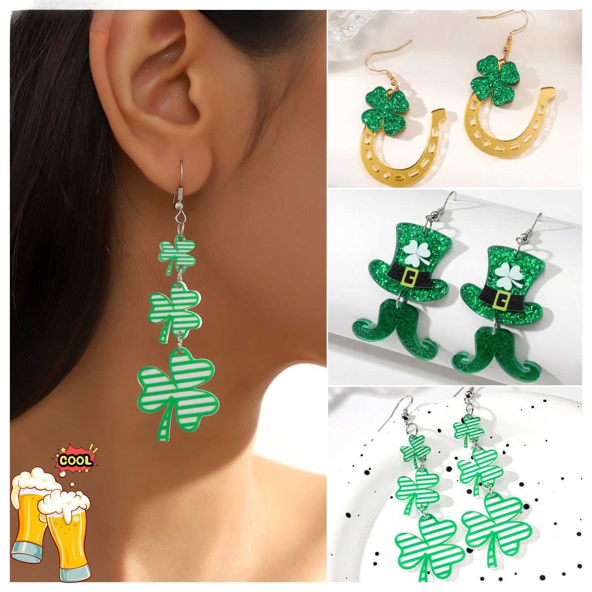 Wholesale St. Patrick's Day Mardi Gras Clover Acrylic Earrings