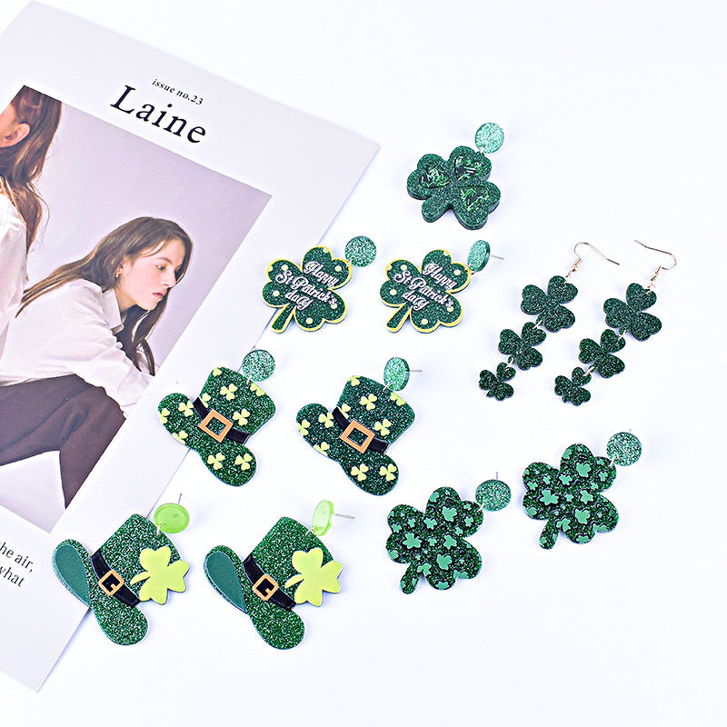 Wholesale St. Patrick's Day Shamrock Hat Earrings