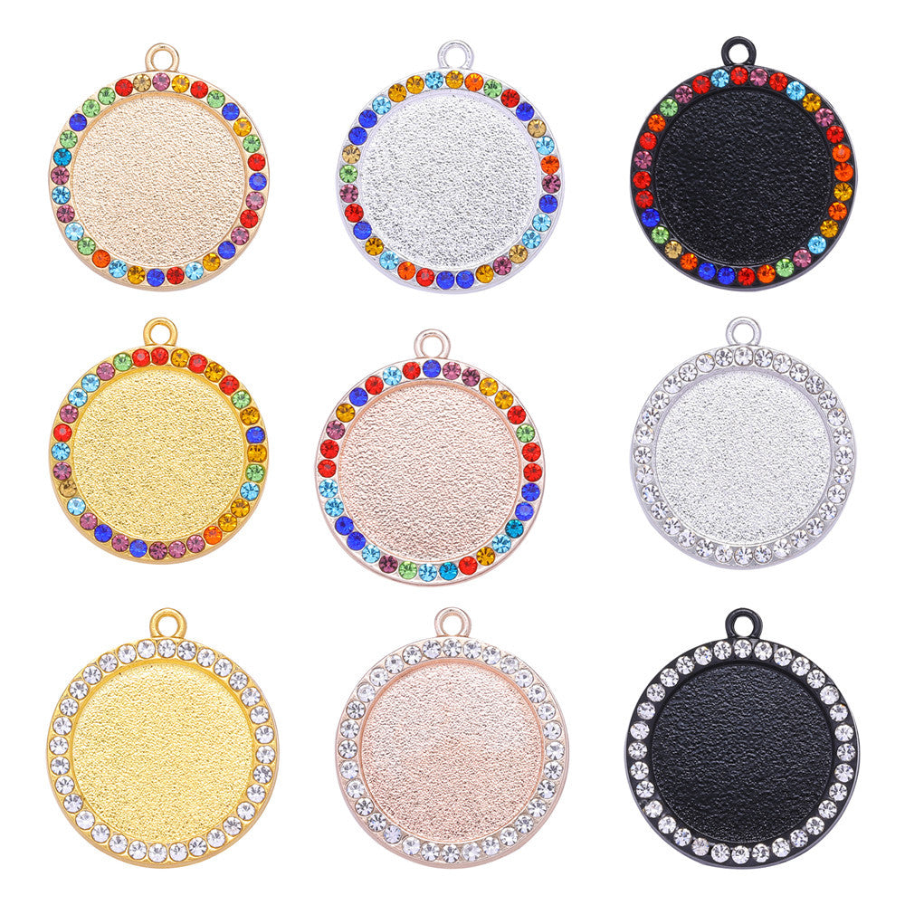 Wholesale 100pcs Alloy Sublimation Jewelry Blanks Round Diamond Pendant Pendant