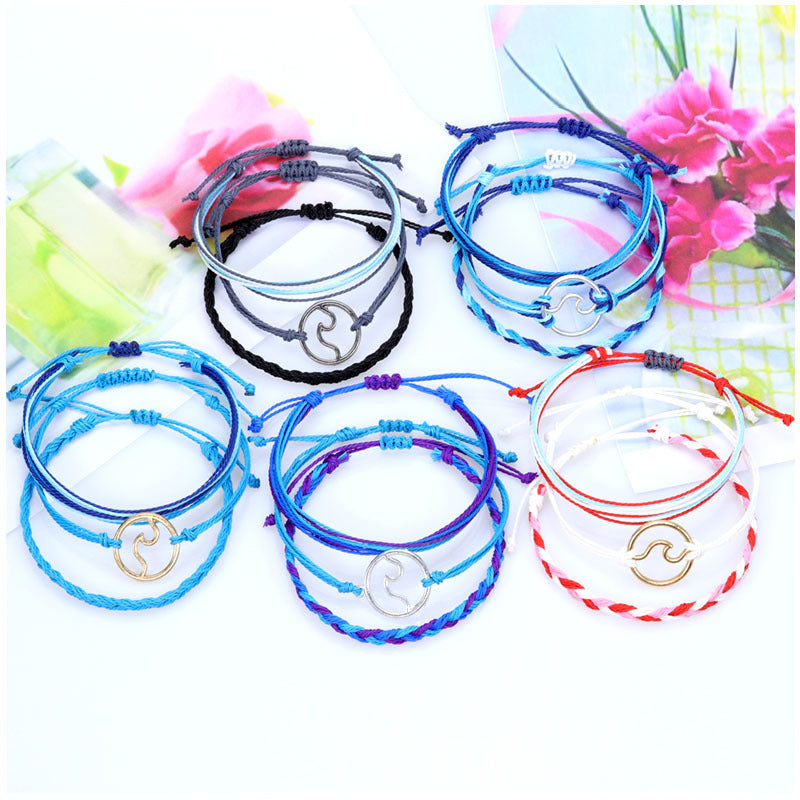 Wholesale Bohomian Wax Thread Braided Surf Bracelet Set