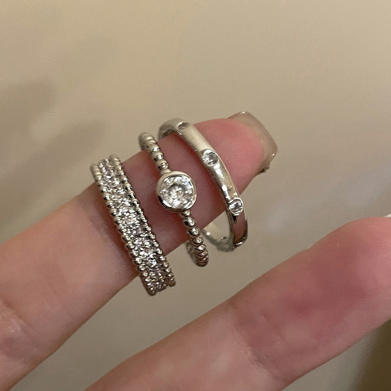 Wholesale Set of 3-piece Diamond Inlaid Open Alloy Rings
