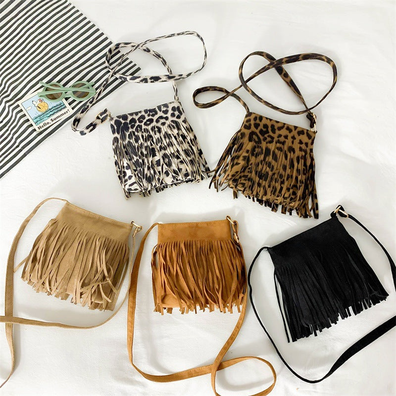 Wholesale PU Leopard Print Tassel Children's Shoulder Crossbody Bag