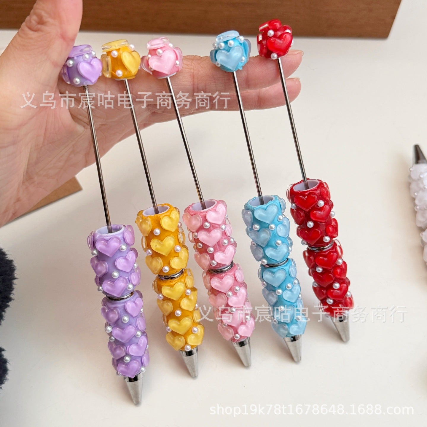 Wholesale 2pcs Heart-shaped Beaded Pen DIY Clay Beadable Pen