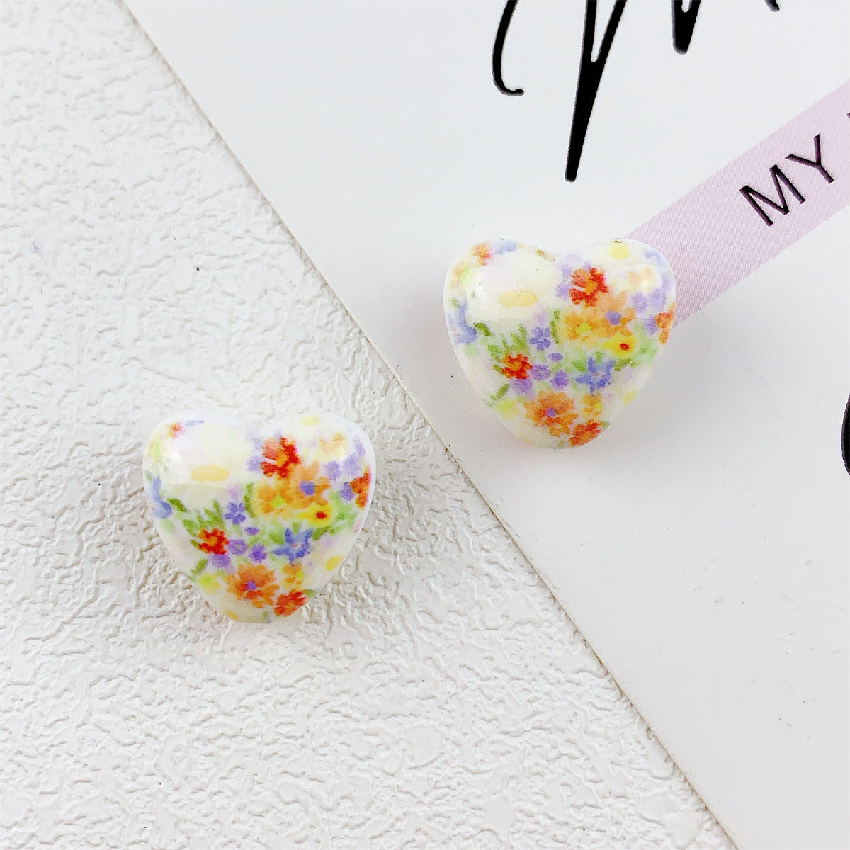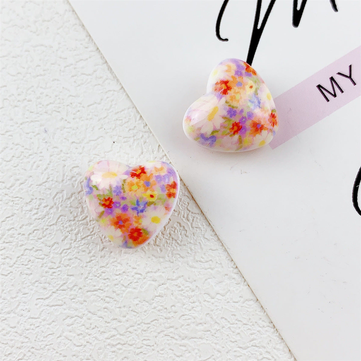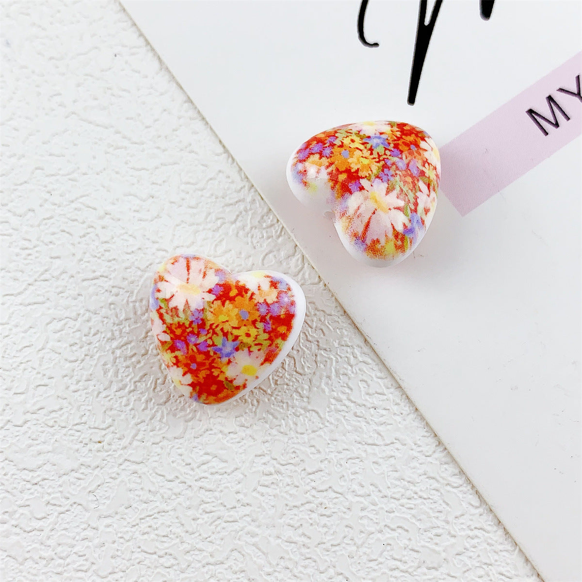 Wholesale 10pcs double-sided printed oil painting style flower love acrylic beads