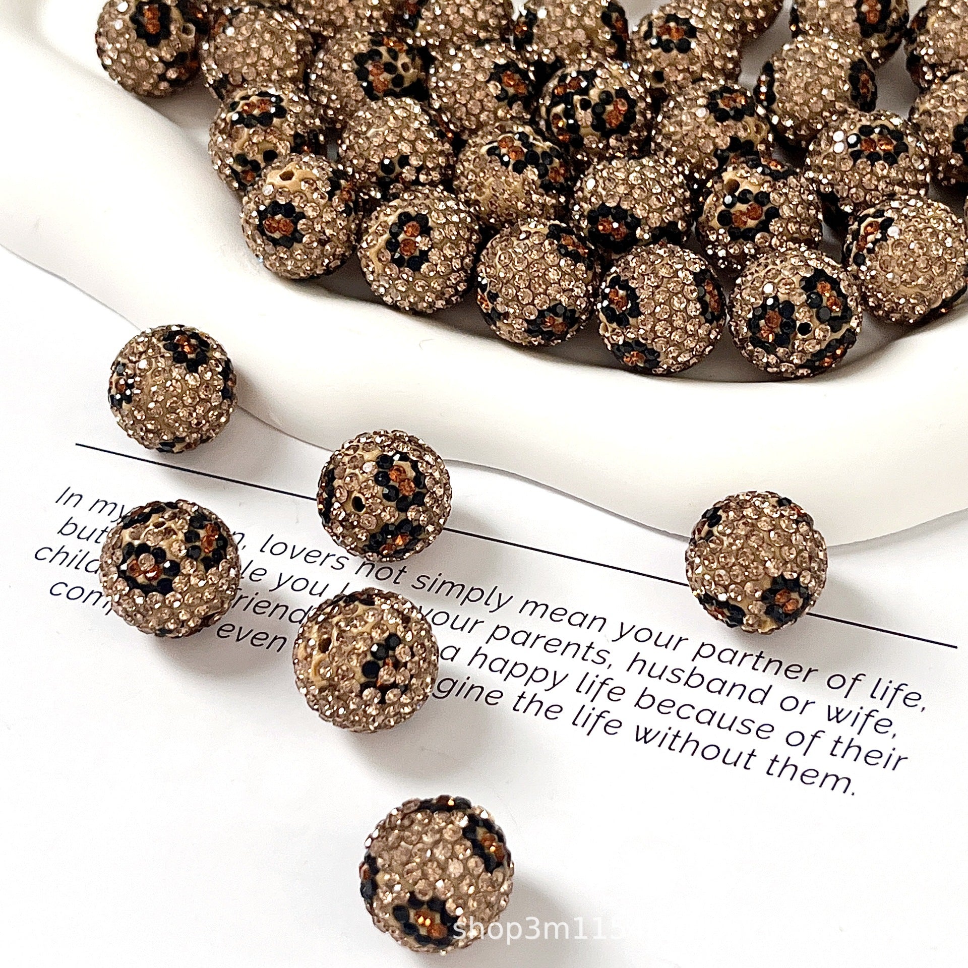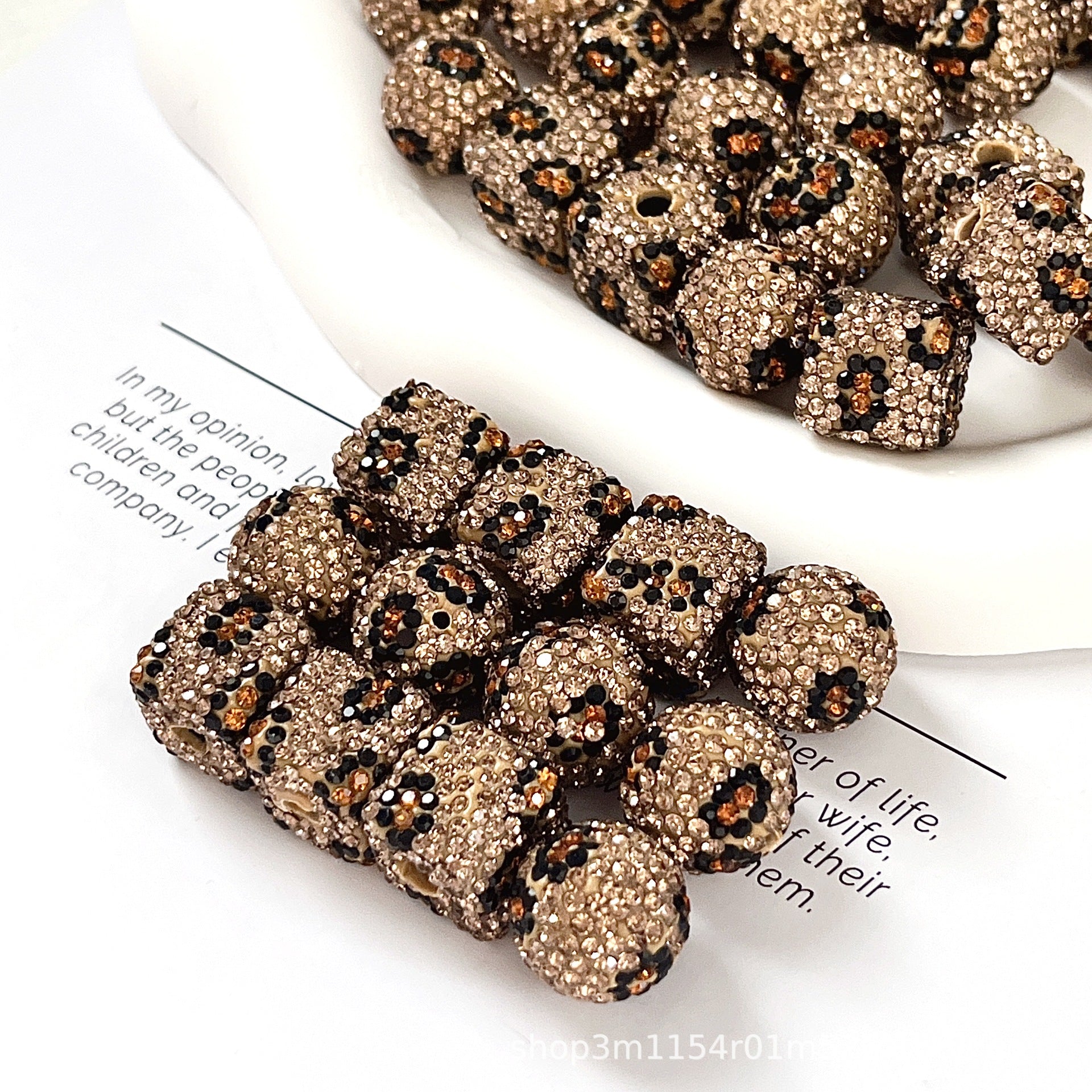 Wholesale 10pcs Leopard patterned clay round diamond beads