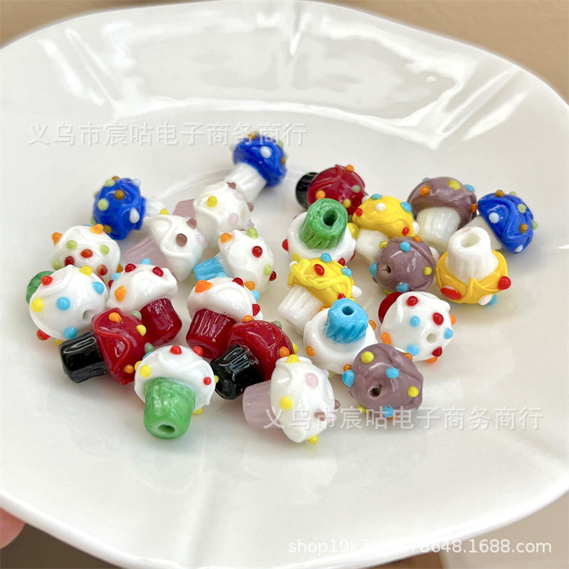 Wholesale 10pcs Glassy mushroom-shaped long-handled contrasting-color beads