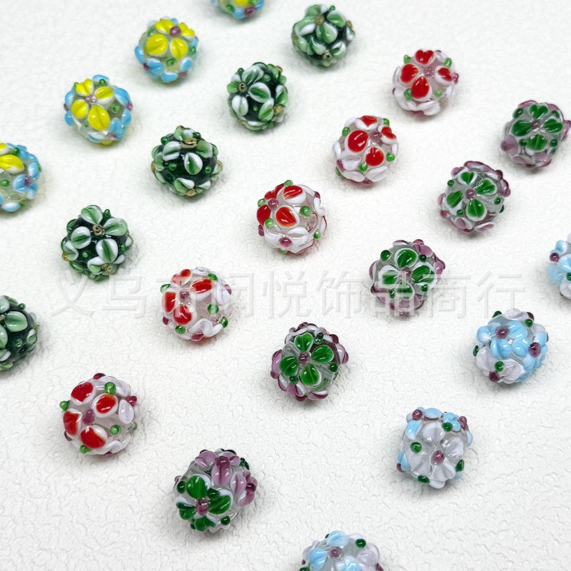 Wholesale 30pcs Colorful Lacquer Carving Powder Pressed Stereo Beads