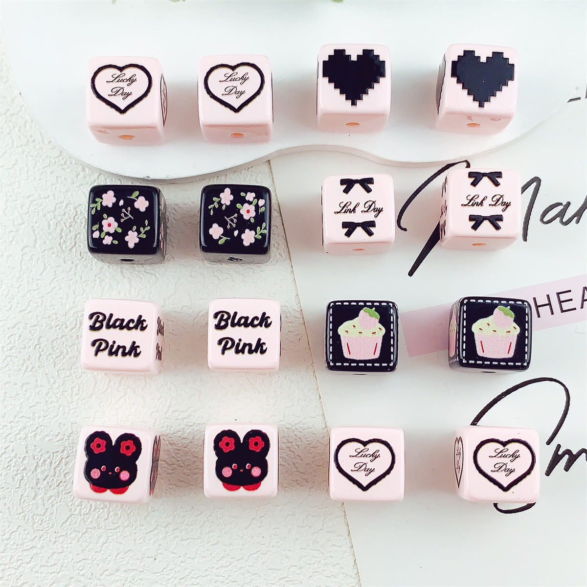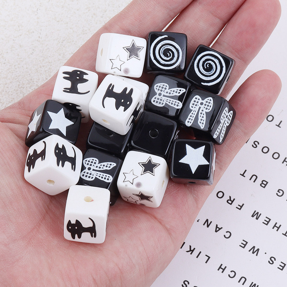 Wholesale 10pcs 14mm pentagram cat bow black and white square acrylic beads