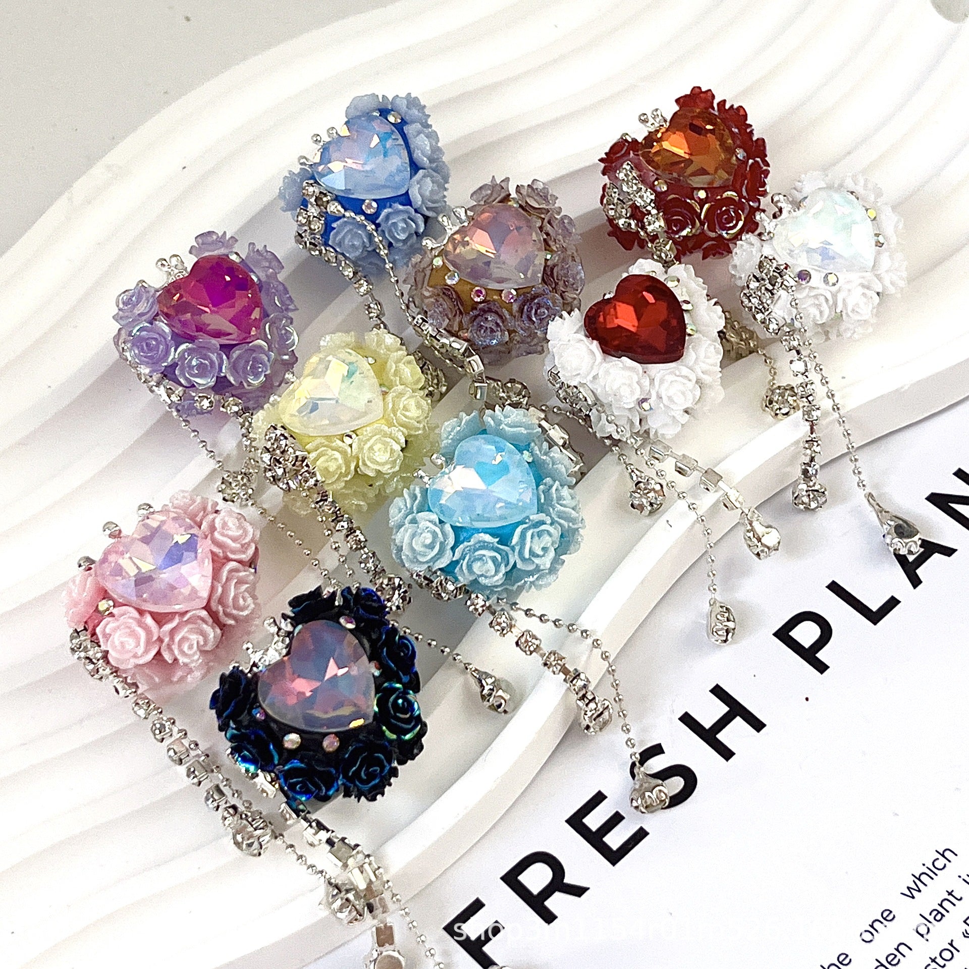 Wholesale 10pcs Water Diamond Colored Rose Pearl Love Bead