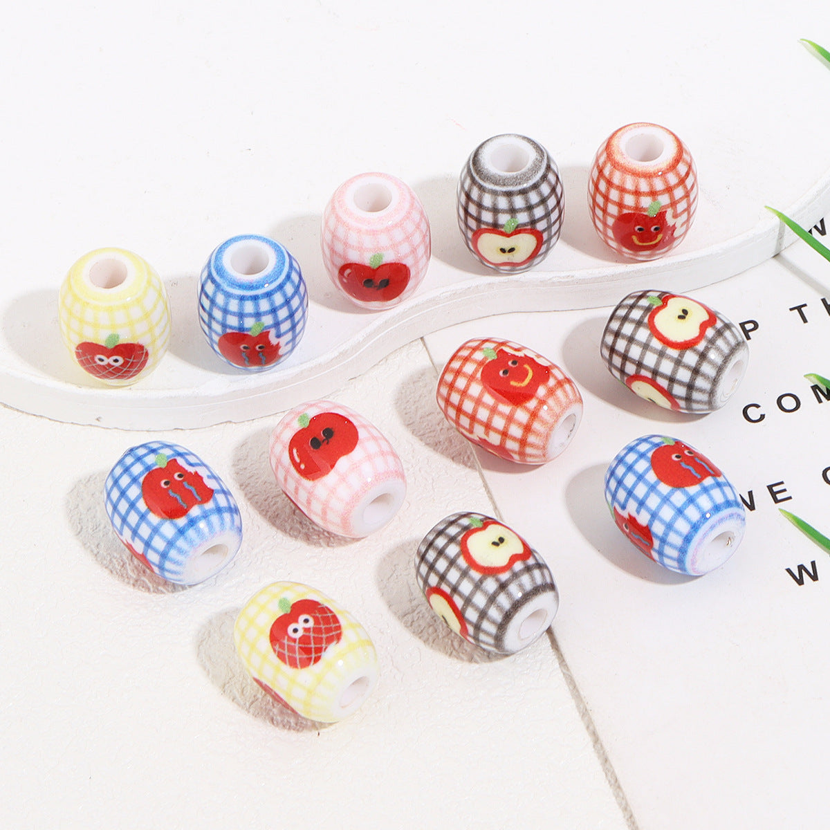 Wholesale 10pcs color printed apple oval acrylic beads