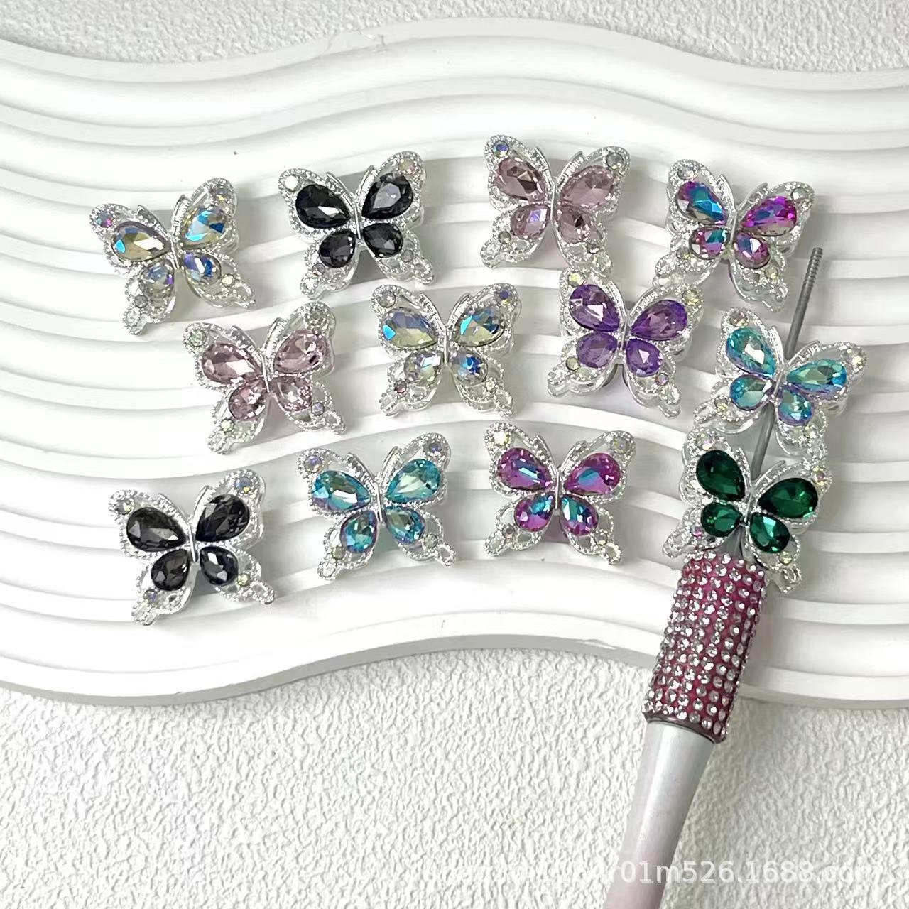 Wholesale 10pcs Crystal Diamond Three Dimensional Butterfly Straight Hole Beads
