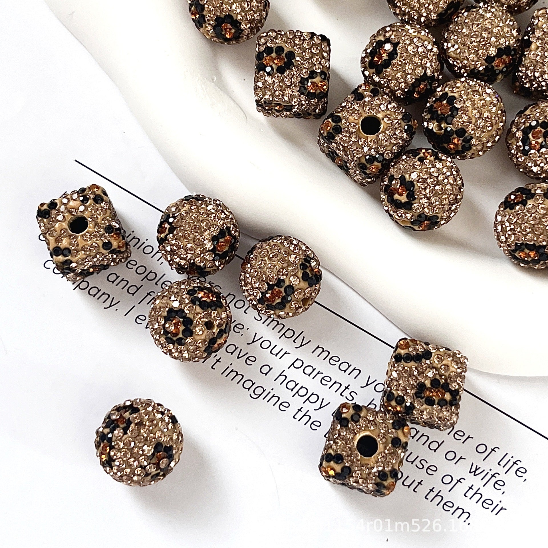 Wholesale 10pcs Leopard patterned clay round diamond beads