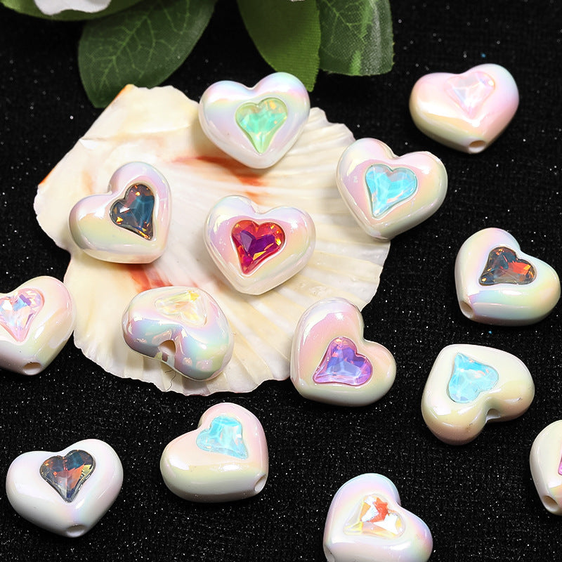 Wholesale 50pcs Colorful Mocha Rhinestone Inlaid Love Beads