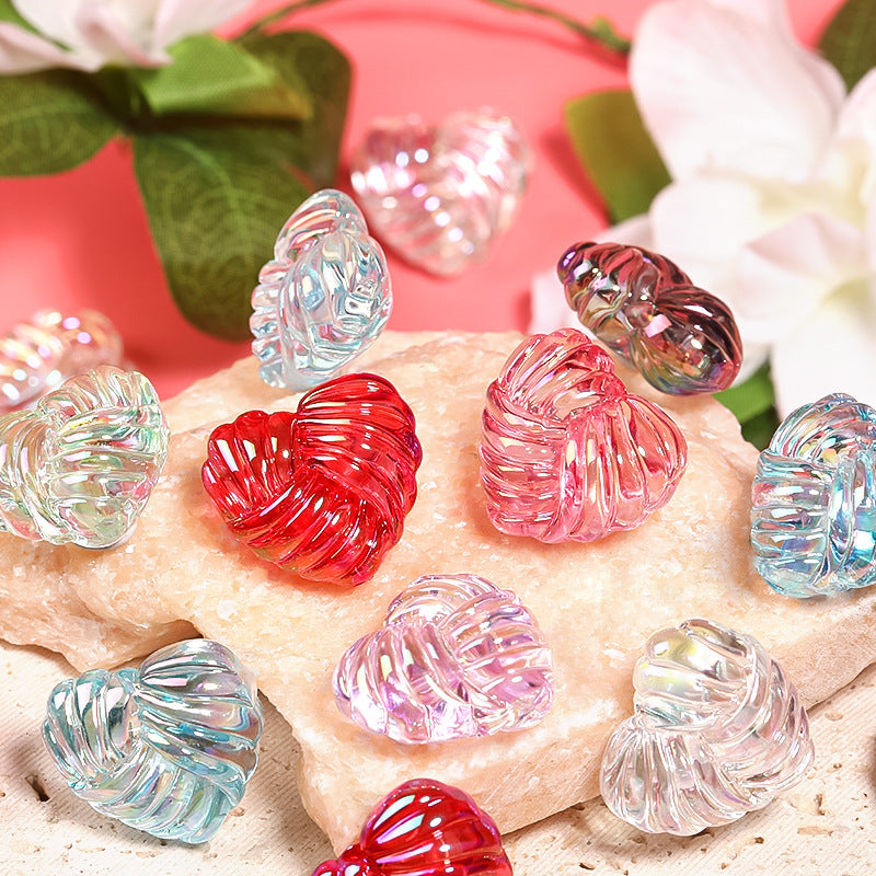 Wholesale 50pcs Colorful Transparent Twisted Wool Heart Beads