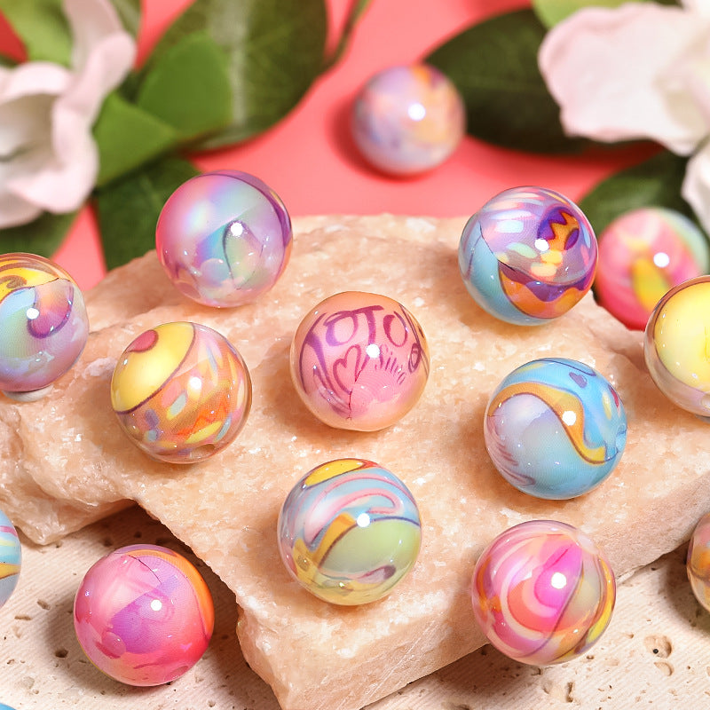 Wholesale 100pcs Graffiti Printed Acrylic UV Plated Colored Round Beads