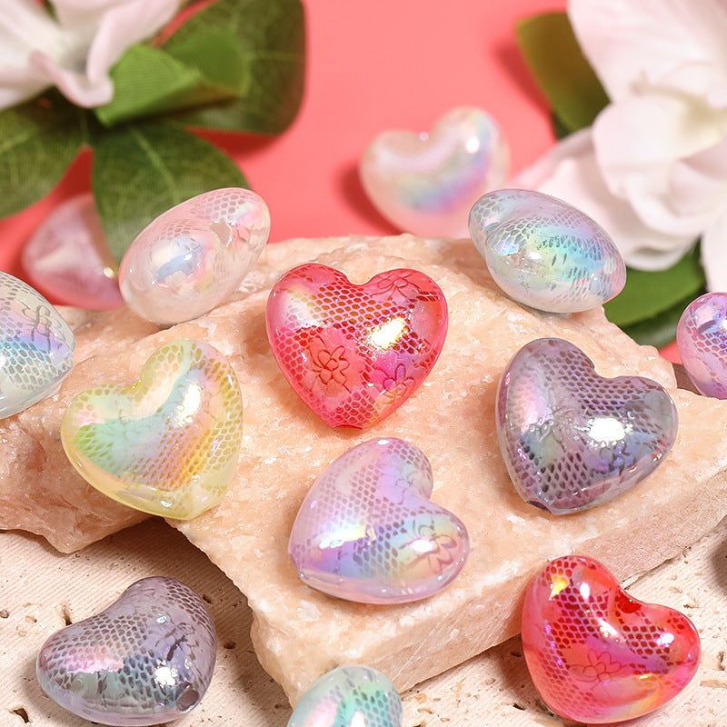 Wholesale 50pcs Lace Heart Print Acrylic Beads