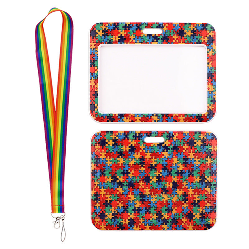 Wholesale Labyrinth Grid Rainbow Polyester Badge Lanyard