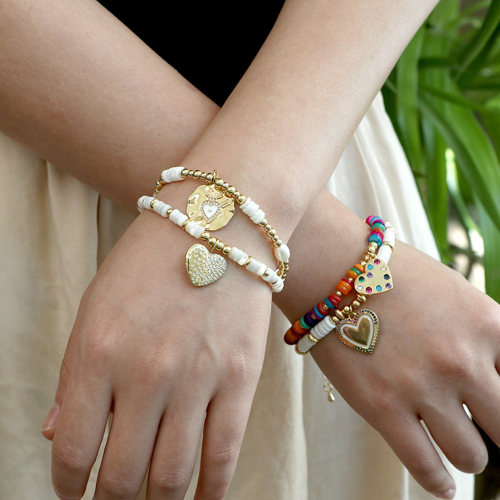 Wholesale Zircon Copper Love Heart Pendant Shell Disc Beads Bracelet