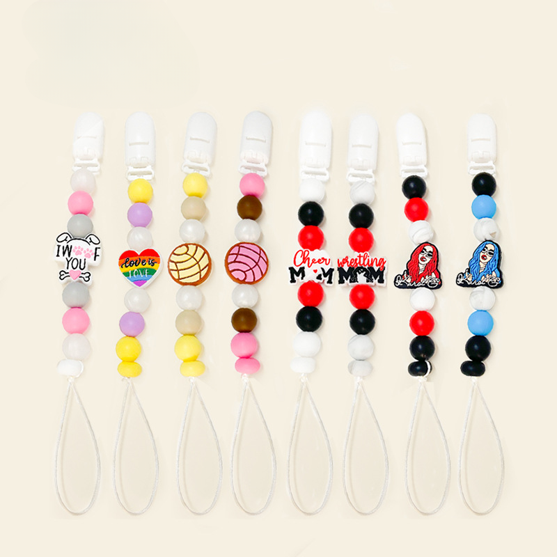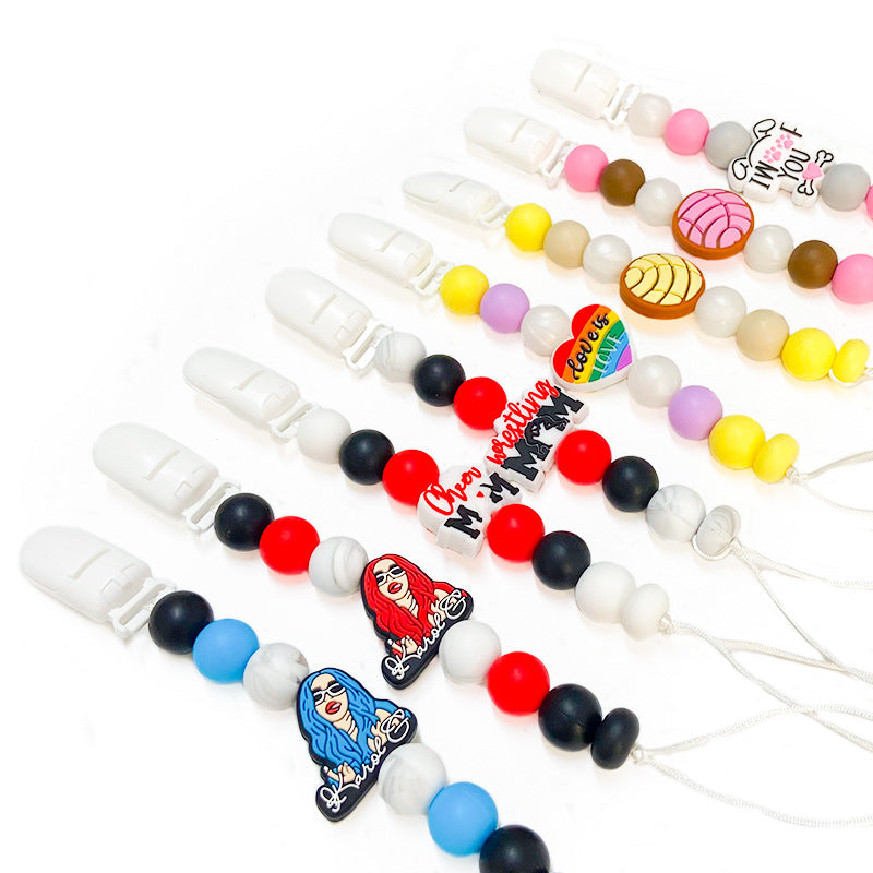 Wholesale 5pcs Silicone String Focal beads Baby Teether Anti-drop Chain
