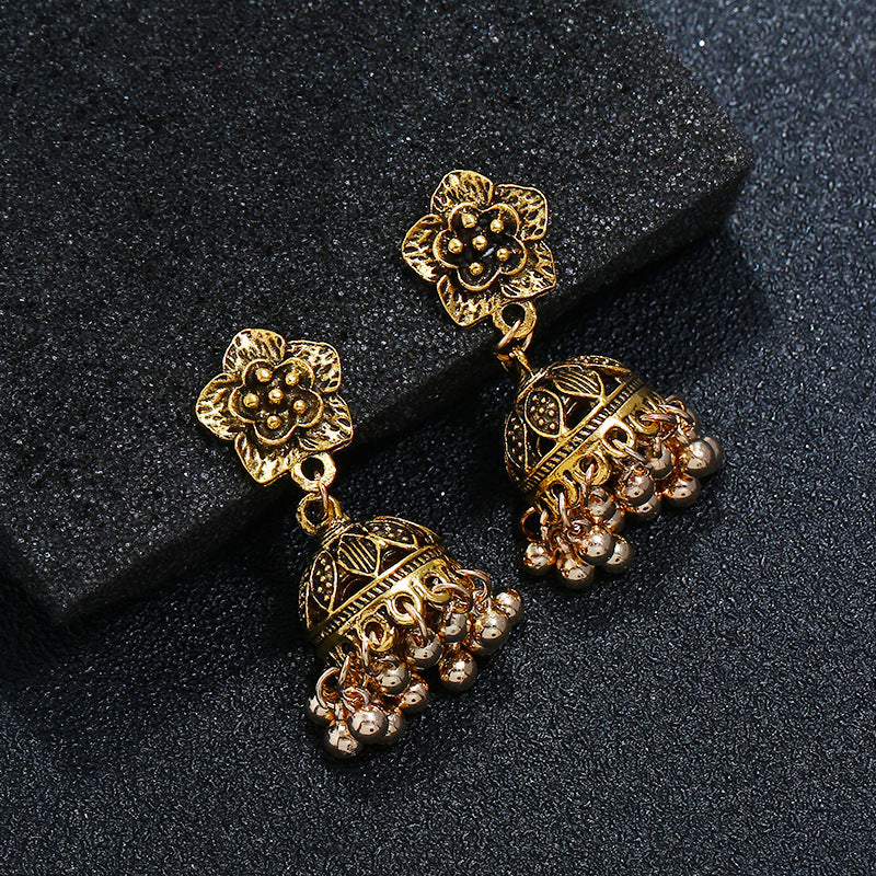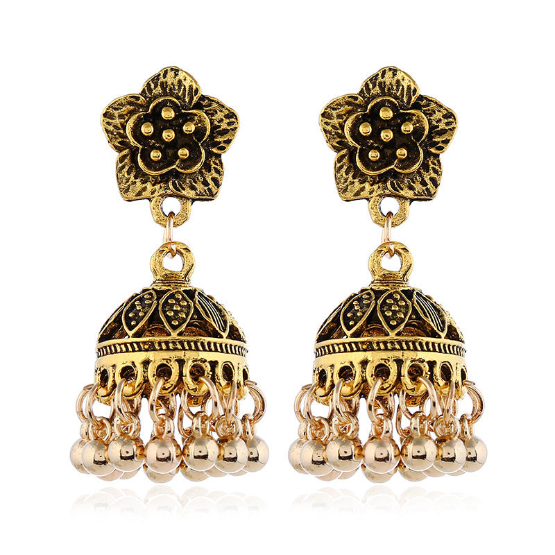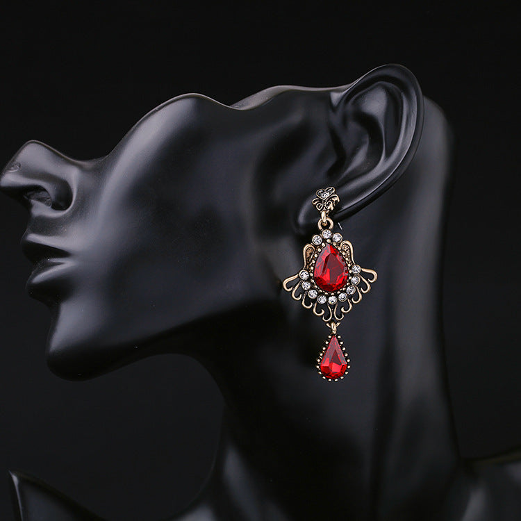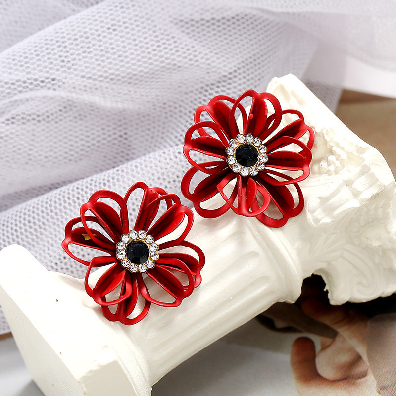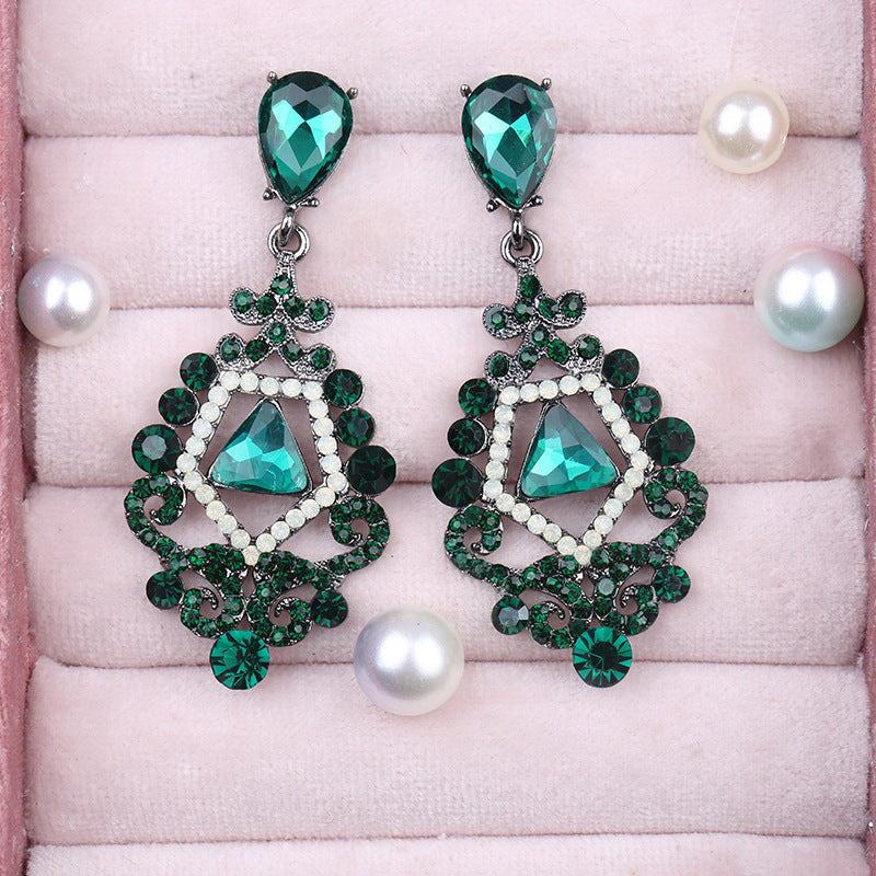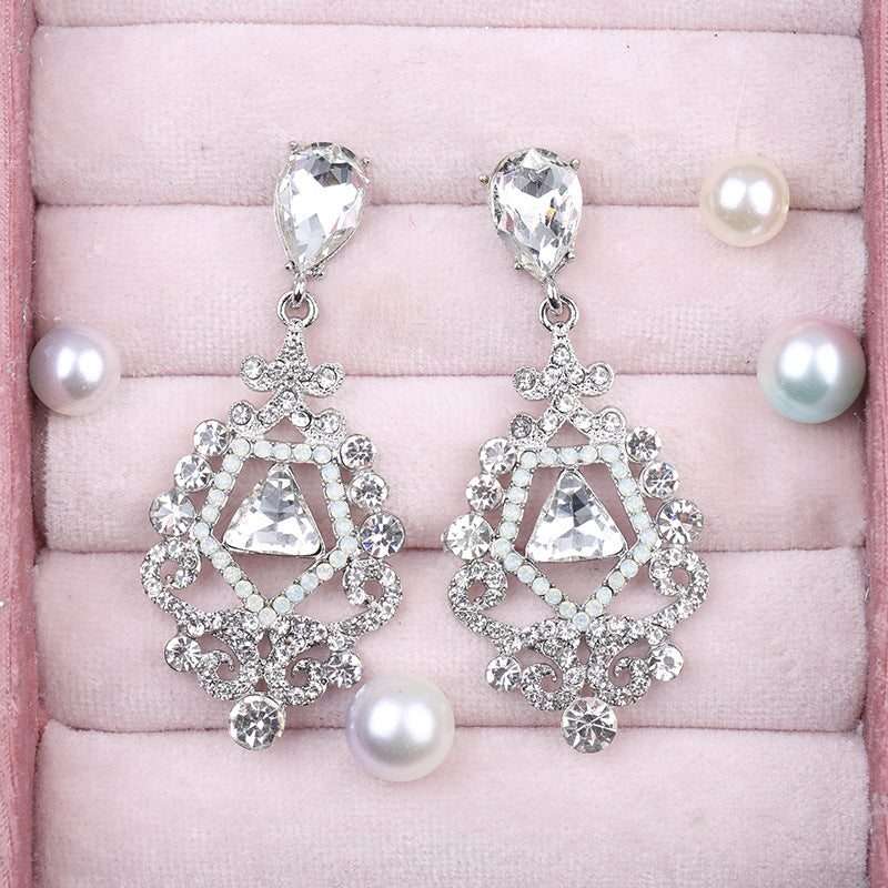 Wholesale Rhinestone Steel Needle Tassel Hollow Symmetry Earrings