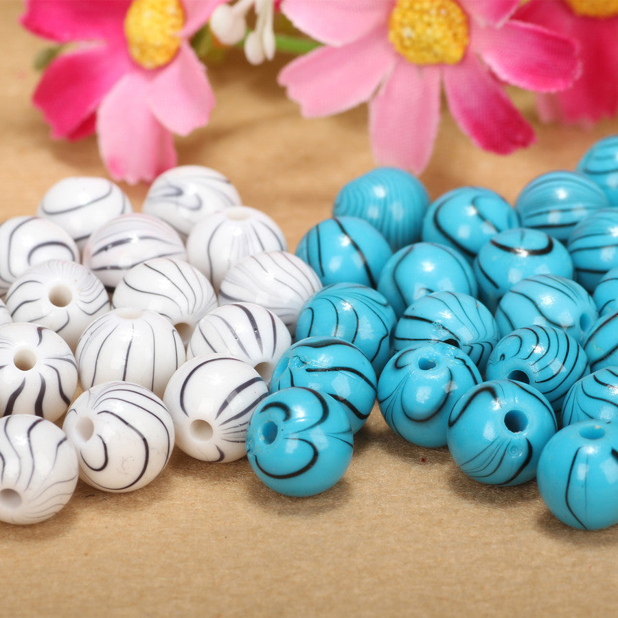Wholesale 50pcs 8mm Plastic Resin Stripes Round Loose Beads