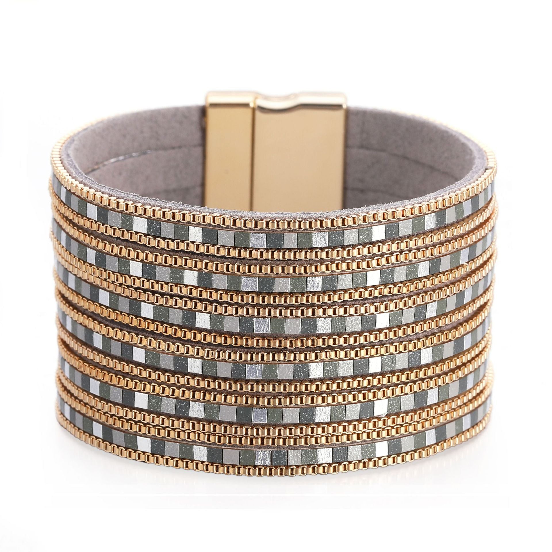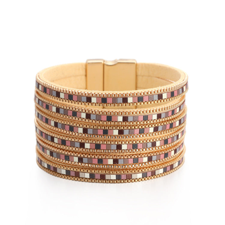 Wholesale Boho Leather Multi-Layered Wide Cross Bracelet