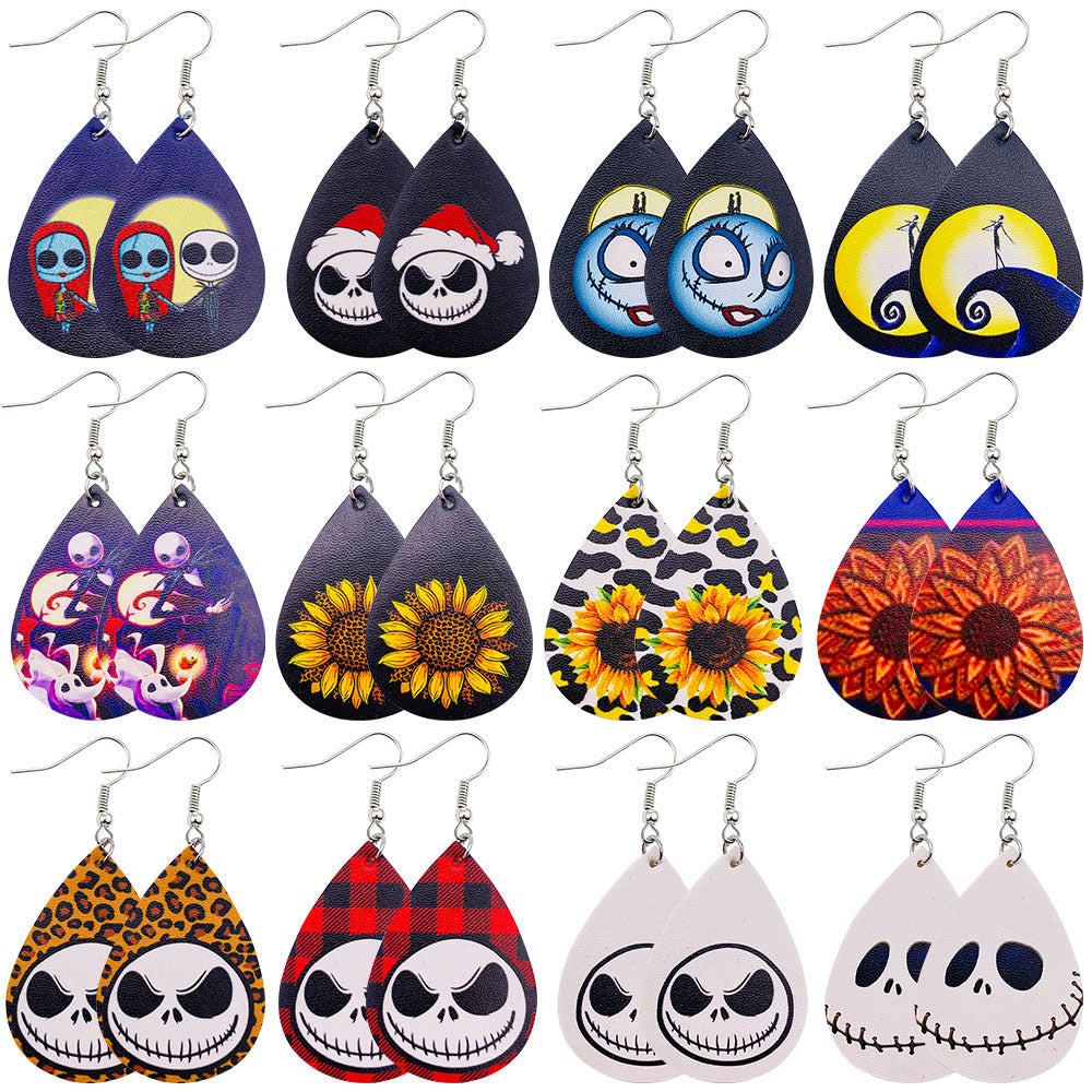 Wholesale 2 Pairs/Pack Christmas Vintage Leather Earrings