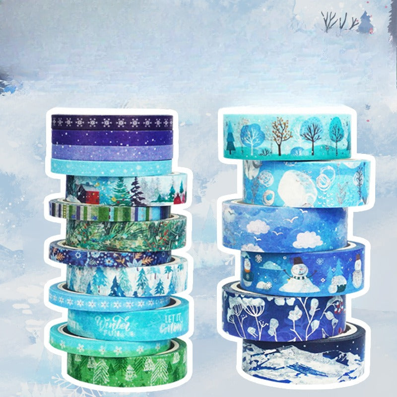 Wholesale 10pcs Winter Stripe Blue DIY and Paper Tape Snowman Ironing Silver Christmas Tree Tent Strap