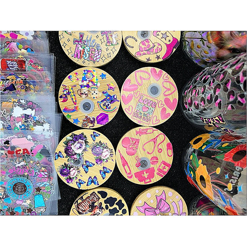 Wholesale Random 20pcs UV DTF Packing and Cartoon Crafts Random Cup Lid Stickers