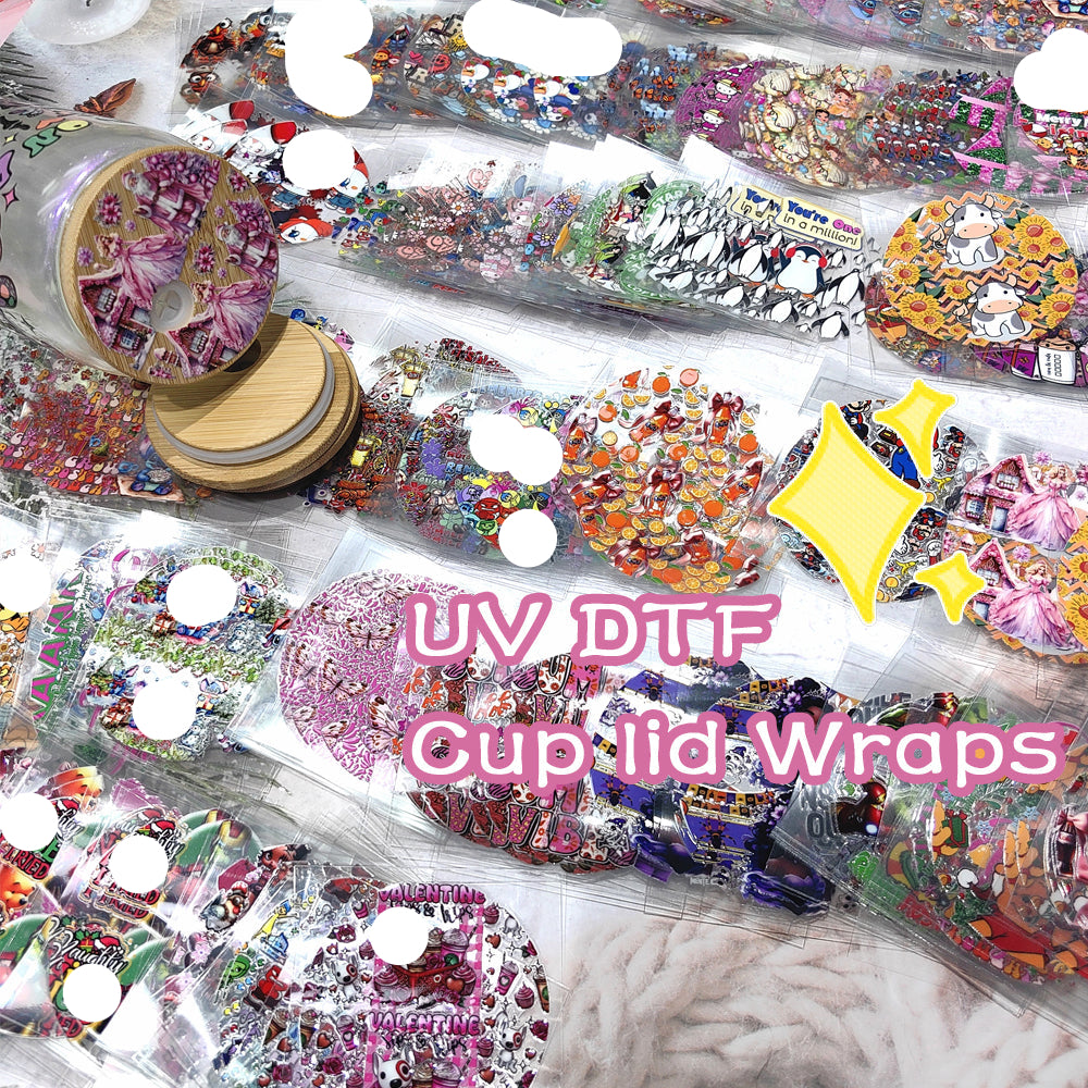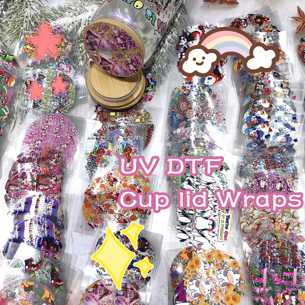 Wholesale 10/20/50pcs 16oz UV DTF Cup Lid Sticker Wraps & Cartoon Random Styles