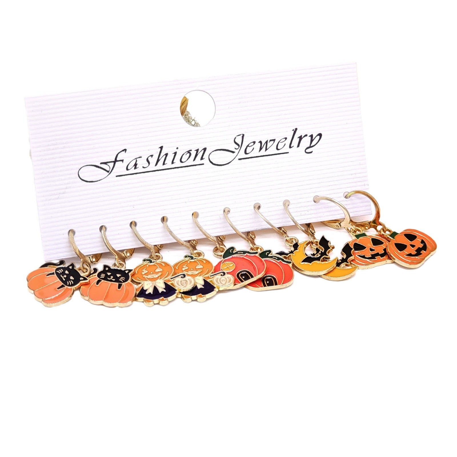 Wholesale 10pcs/set Oil Drop Halloween Creative Ghost Devil Pumpkin Set Earrings