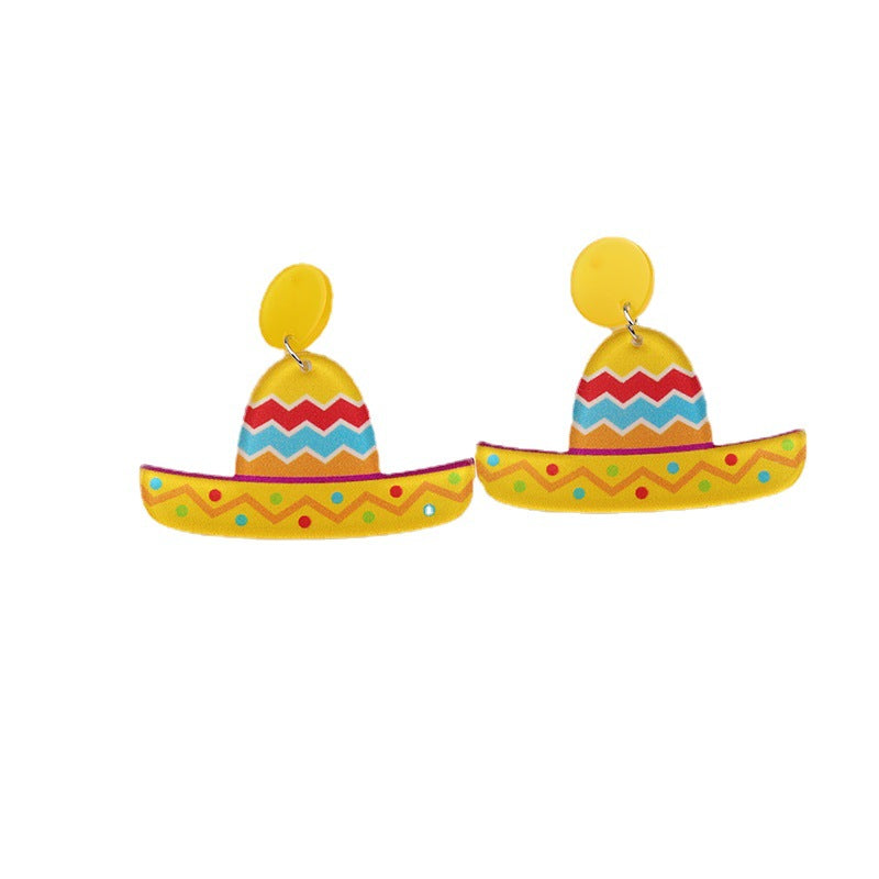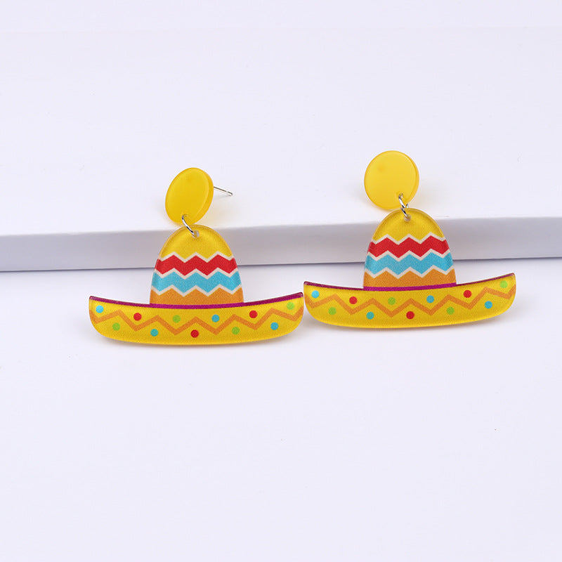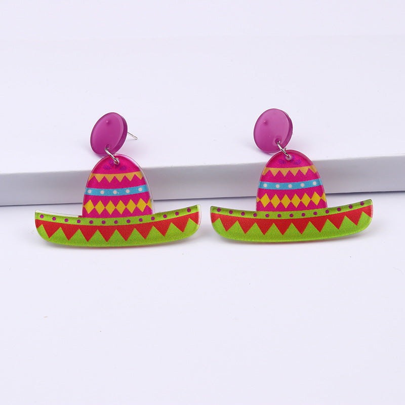 Wholesale 2pairs/pack Mexican Festival Racket Rainbow Boat Print Earrings