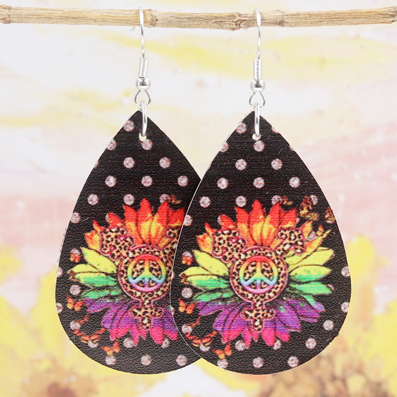 Wholesale 2pairs/pack Rainbow Leopard Print Polka Dot Leather Earrings