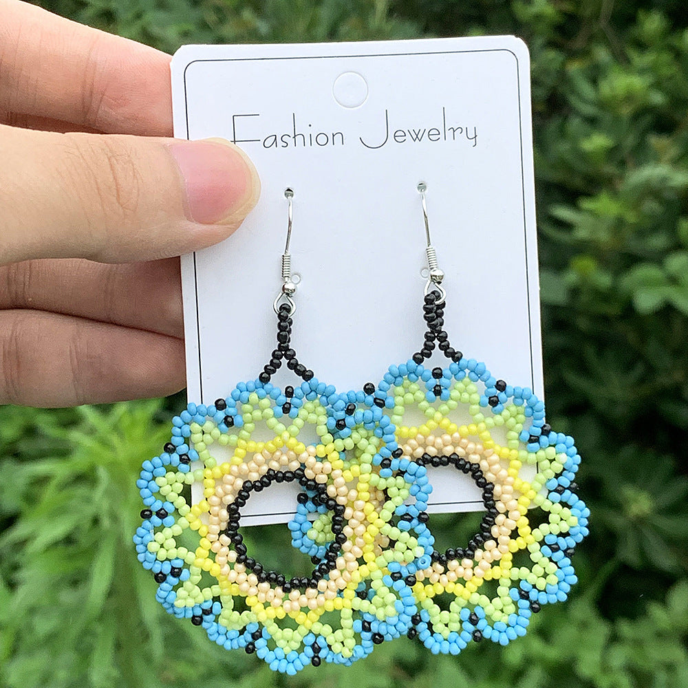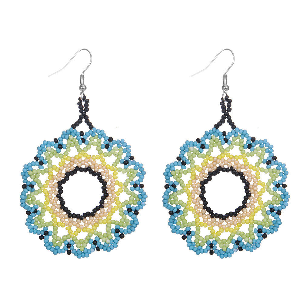 Wholesale Bohemian Exaggerated Flowers Hand-woven Round Earrings