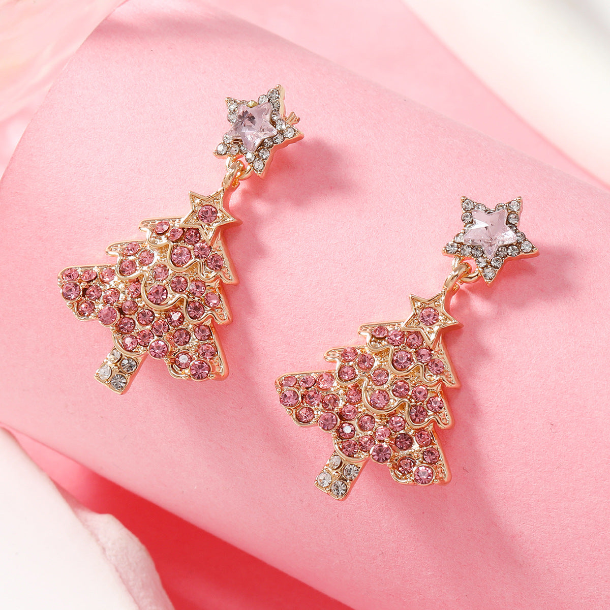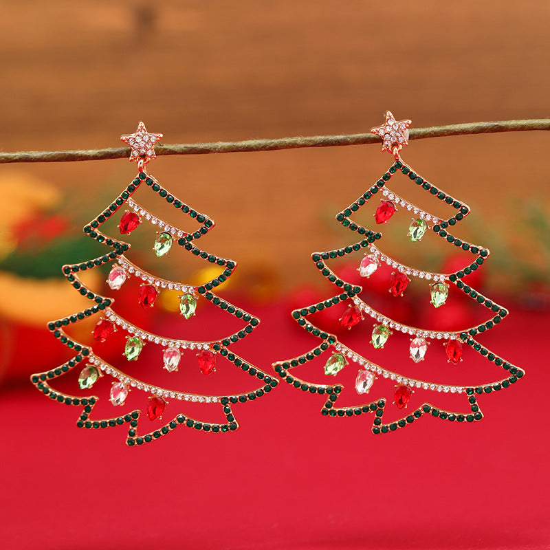Wholesale Christmas High-end Full Diamond Christmas Tree Lights Snowman Earrings
