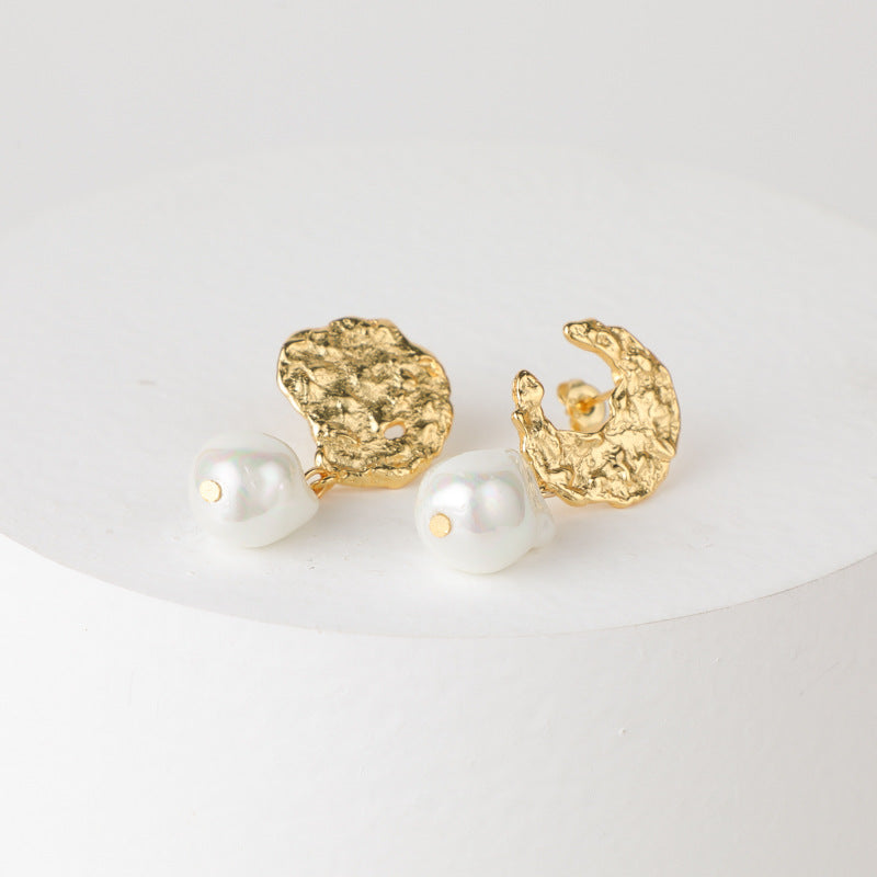 Wholesale Copper Gold-plated Irregular Pearl Earrings