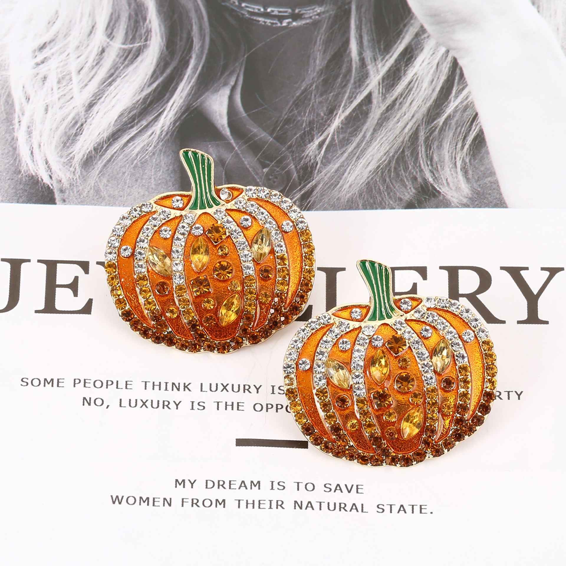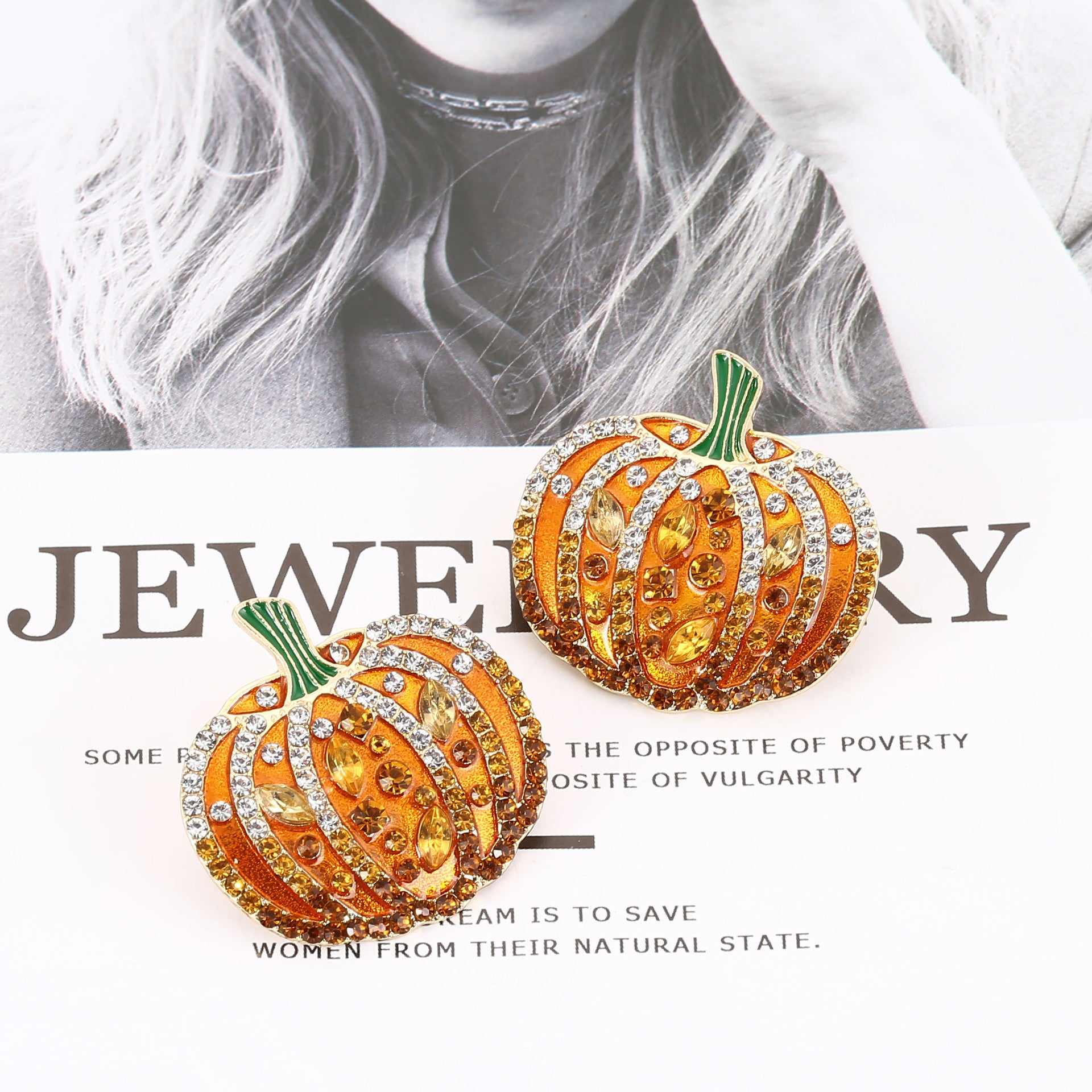 Wholesale Creative Exaggerated Rhinestone Pumpkin Pattern Alloy Earrings