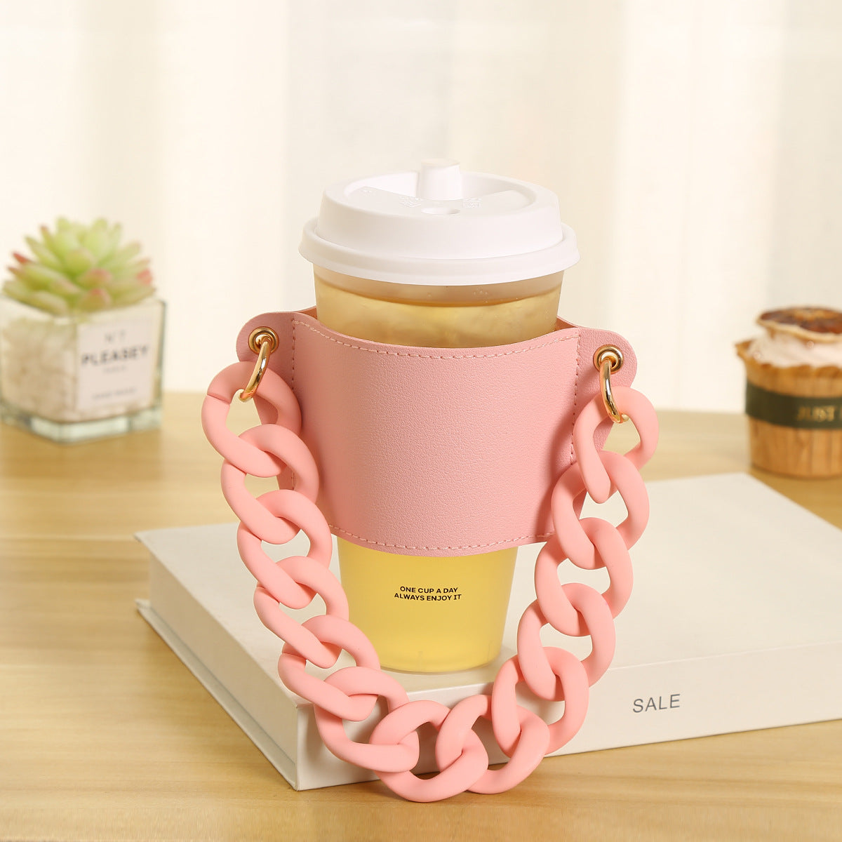 Wholesale Detachable Chain Coffee Non Slip Leather Cup Covers