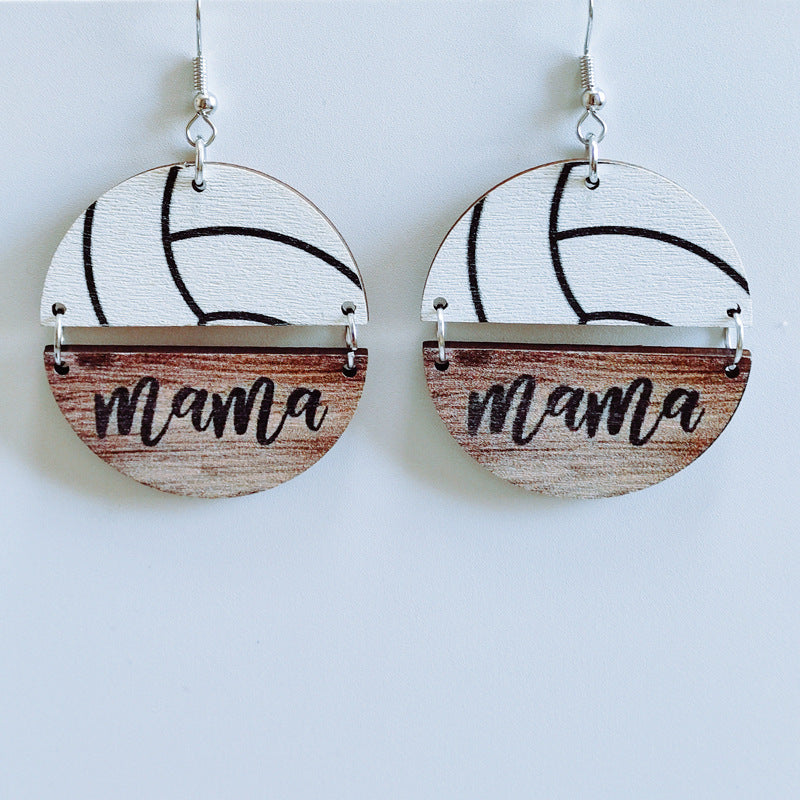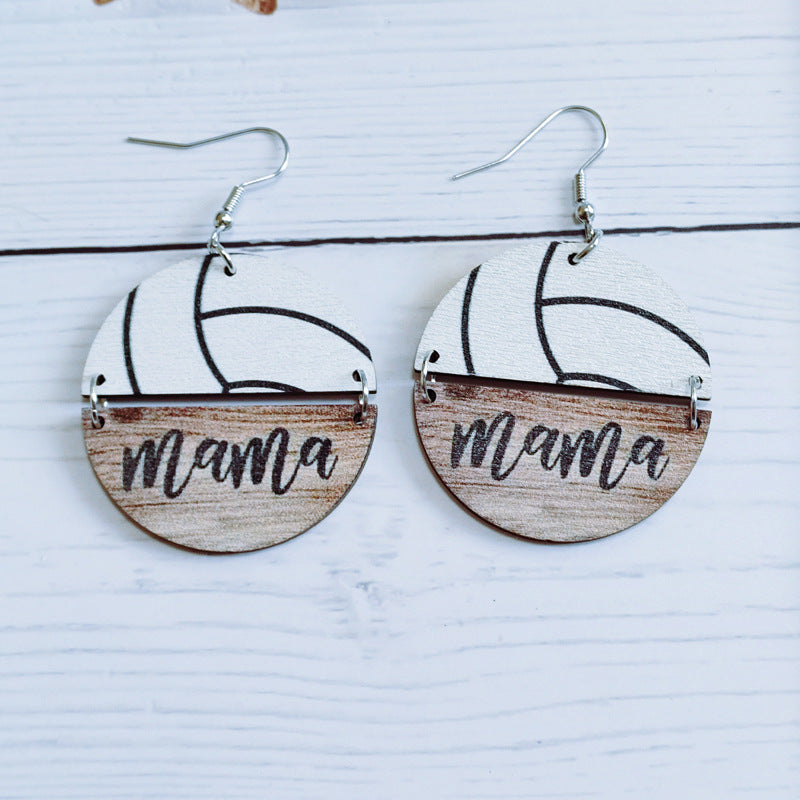 Wholesale Mother's Day Basketball Wooden Round Earrings