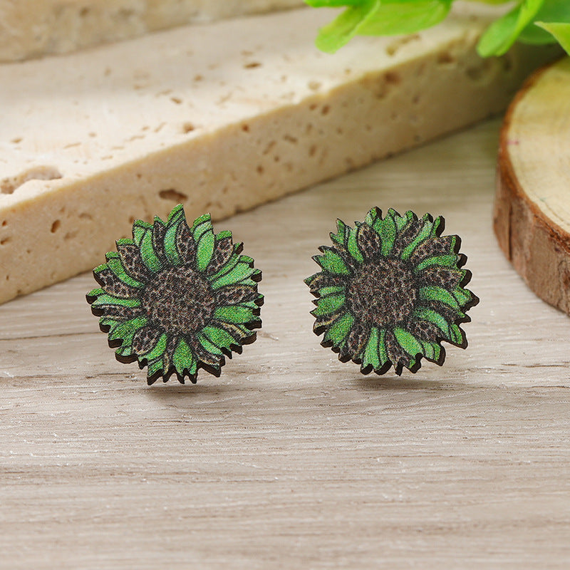 Wholesale Patrick's Day Four Leaf Clover Cartoon Wooden Earrings