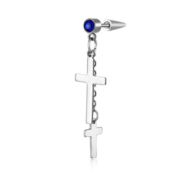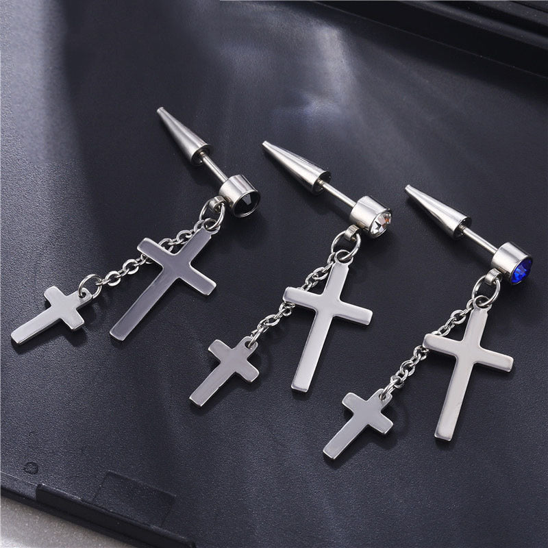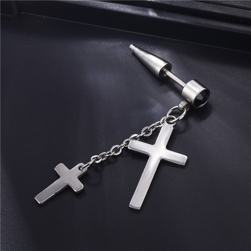 Wholesale Single Titanium Steel Tassel Chain Cross Men's Earrings