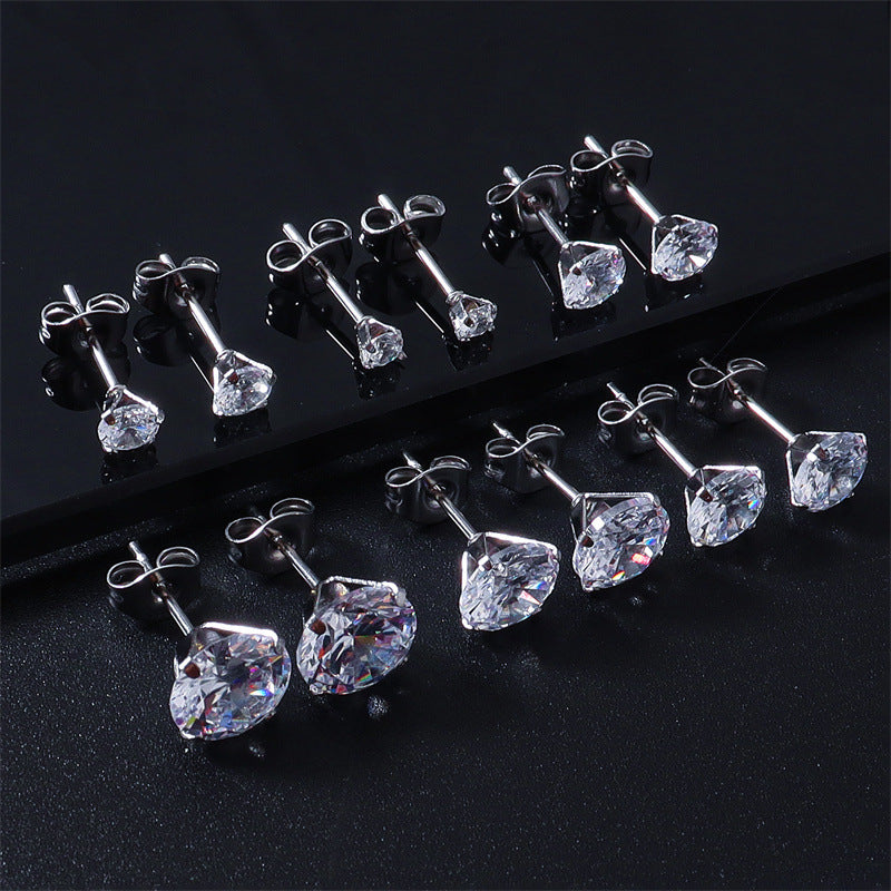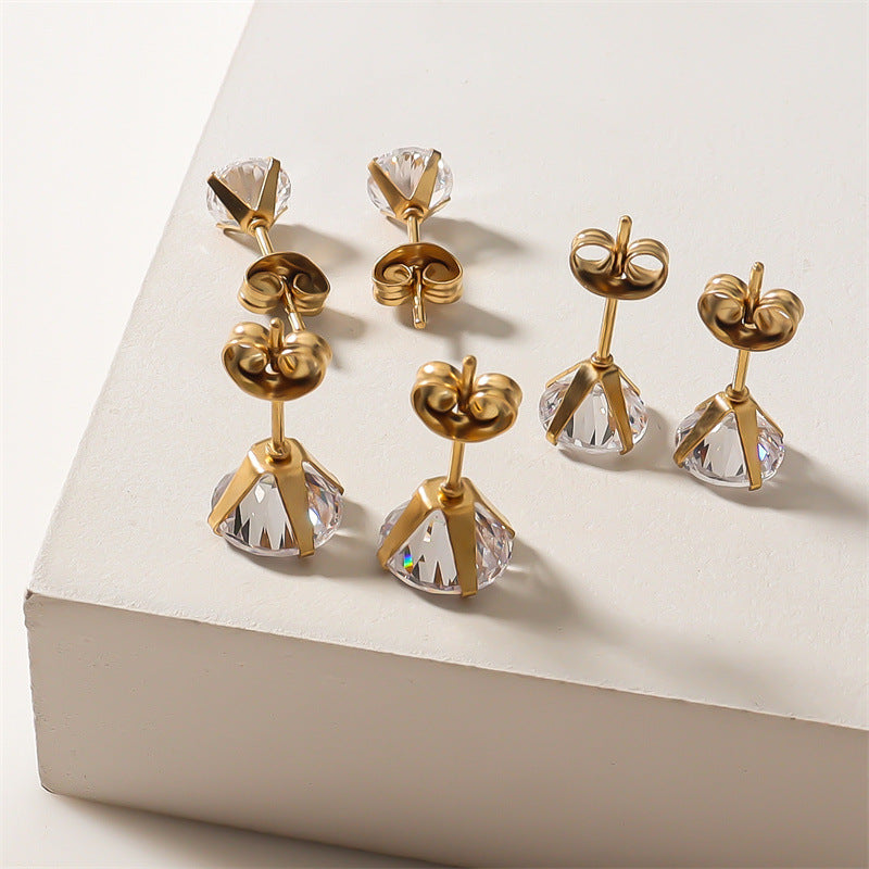 Wholesale Stainless Steel Round Zircon Butterfly Buckle Earrings