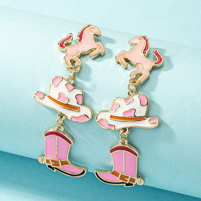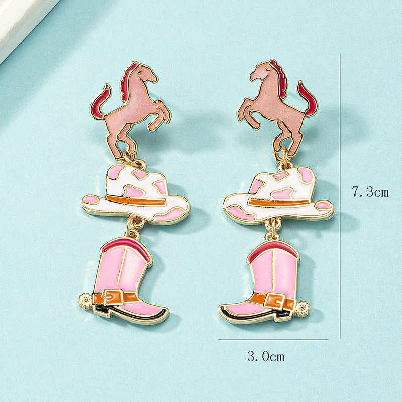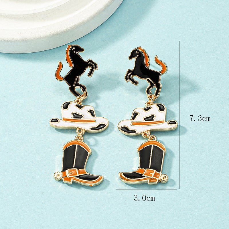 Wholesale Western Style Cow Pattern Cowboy Hat Boots Earrings