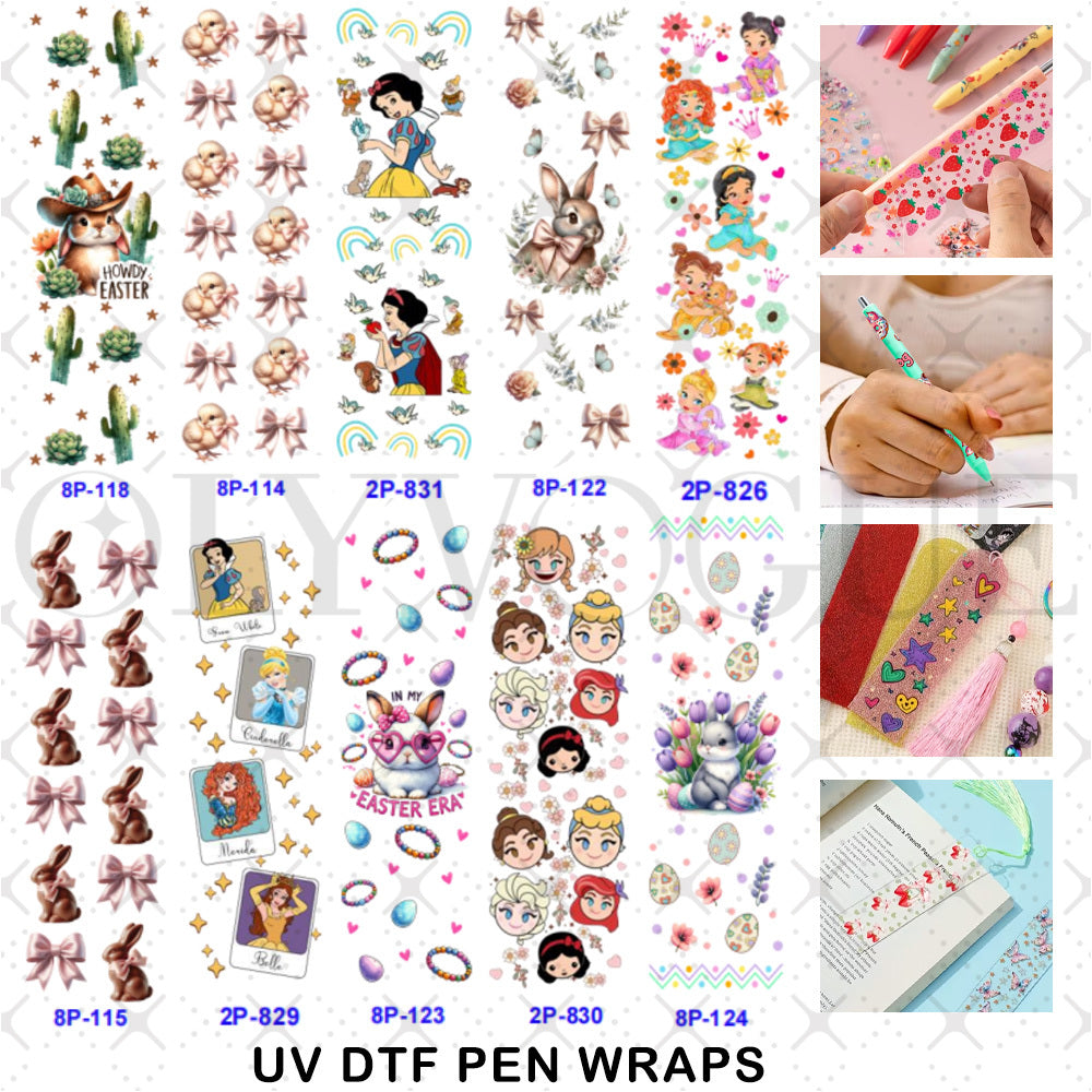 Wholesale 2/8/16 Pcs Easter Bunny Girl Pen & Bookmark Stickers UV DTF Wraps
