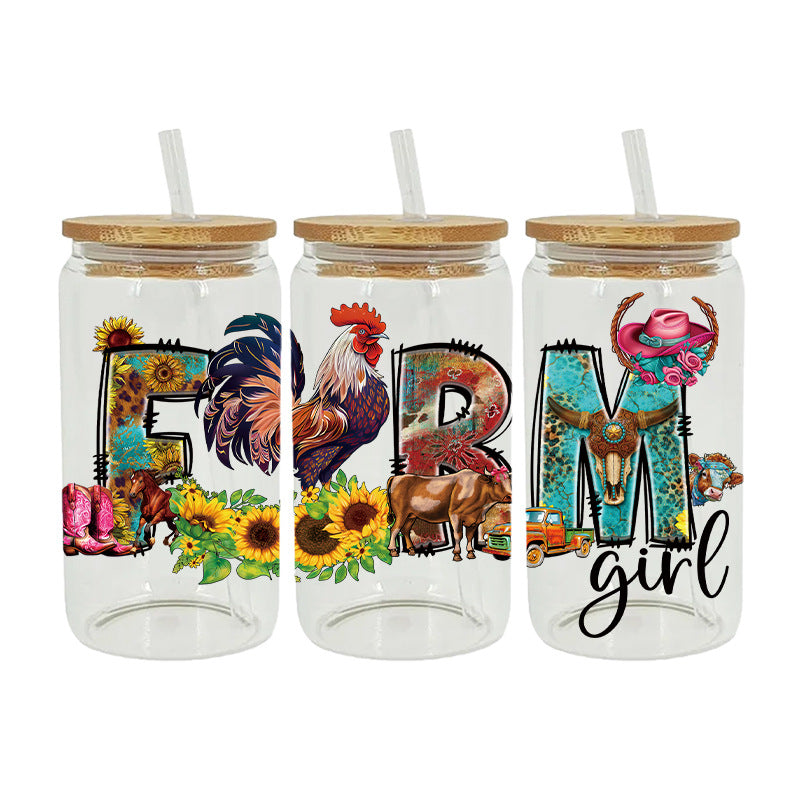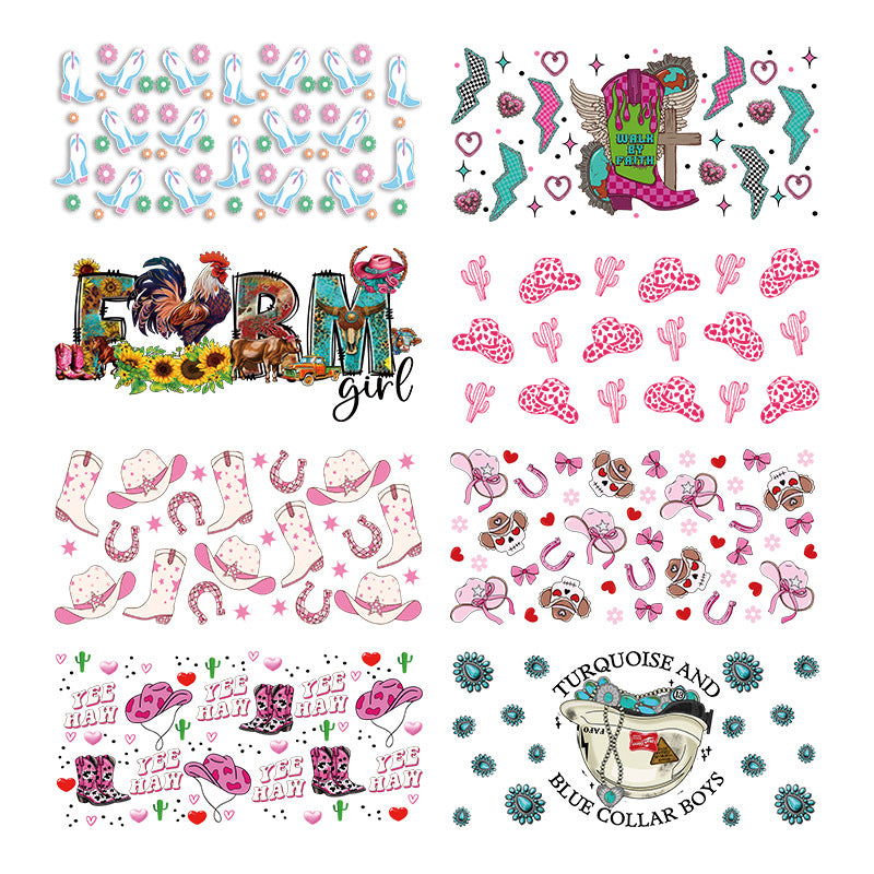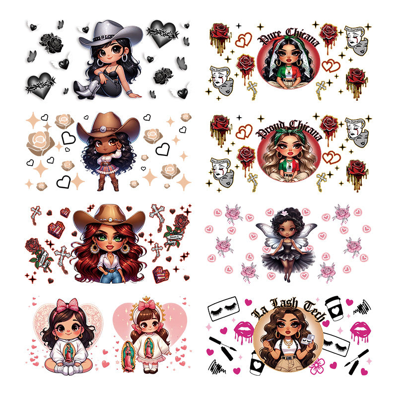 Wholesale Western style cute girl 16oz Cup UV DTF Wraps