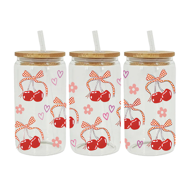 Wholesale Pink Cherry Heart 16oz Cup UV DTF Wraps